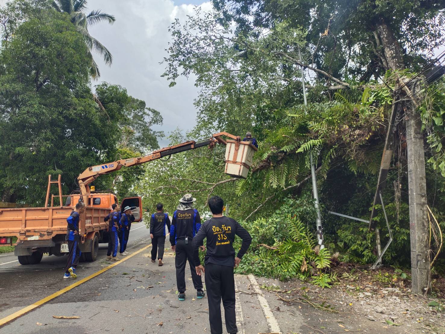 หมวดทางหลวงบางกะจะ แขวงทางหลวงจันทบุรี ร่วมกับ หน่วยงานเทศบาลตำบลหนองบัว ดำเนินการตัดต้นไม้ที่ล้มกีดขวางช่องทางจราจร ในทางหลวงหมายเลข 3348 ตอน หนองขอน - จันทนิมิต