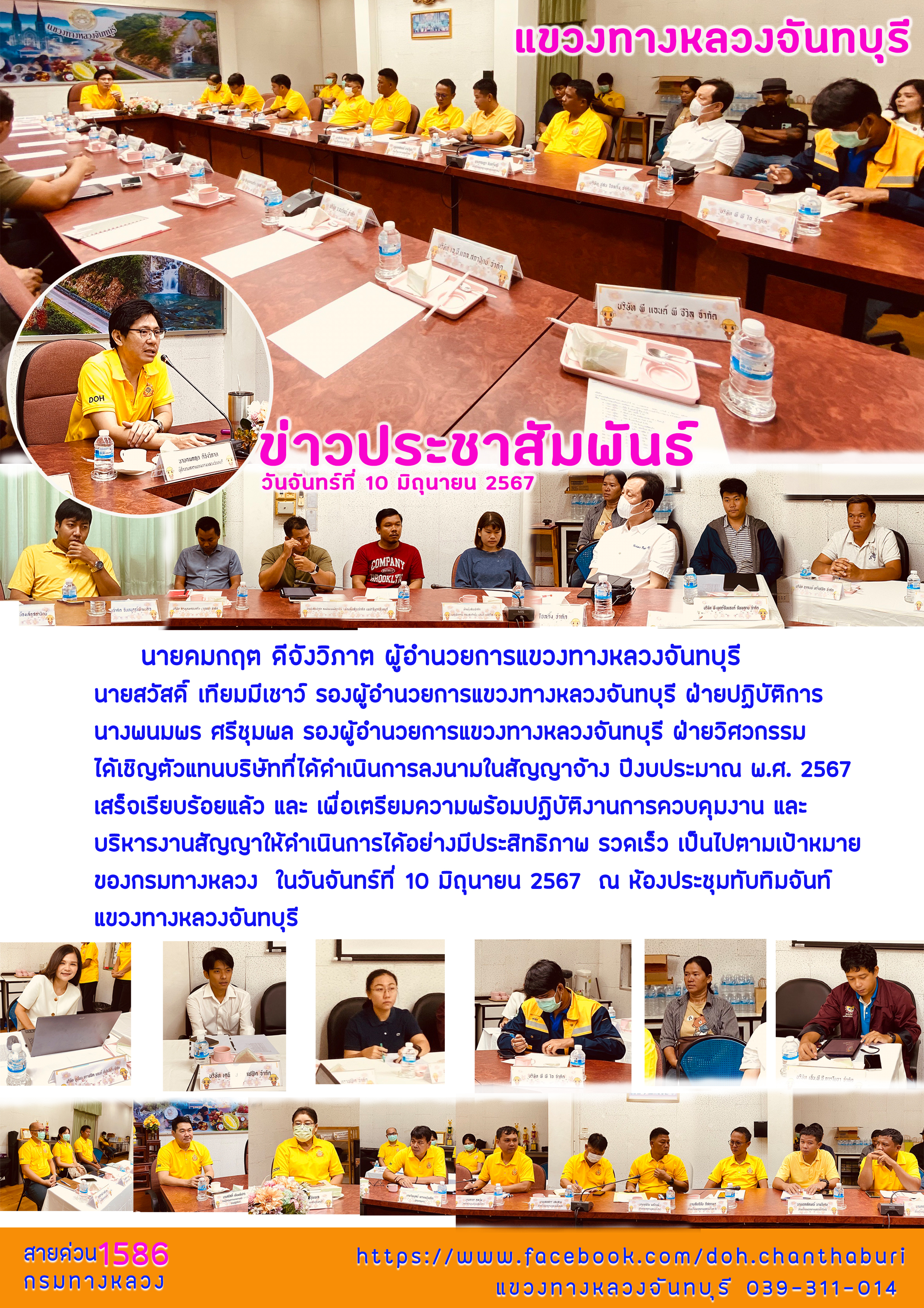 แขวงทางหลวงจันทบุรี ได้ประชุมเตรียมความพร้อมปฏิบัติงานการควบคุมงานและบริหารงานสัญญาให้ดำเนินการได้อย่างมีประสิทธิภาพฯ