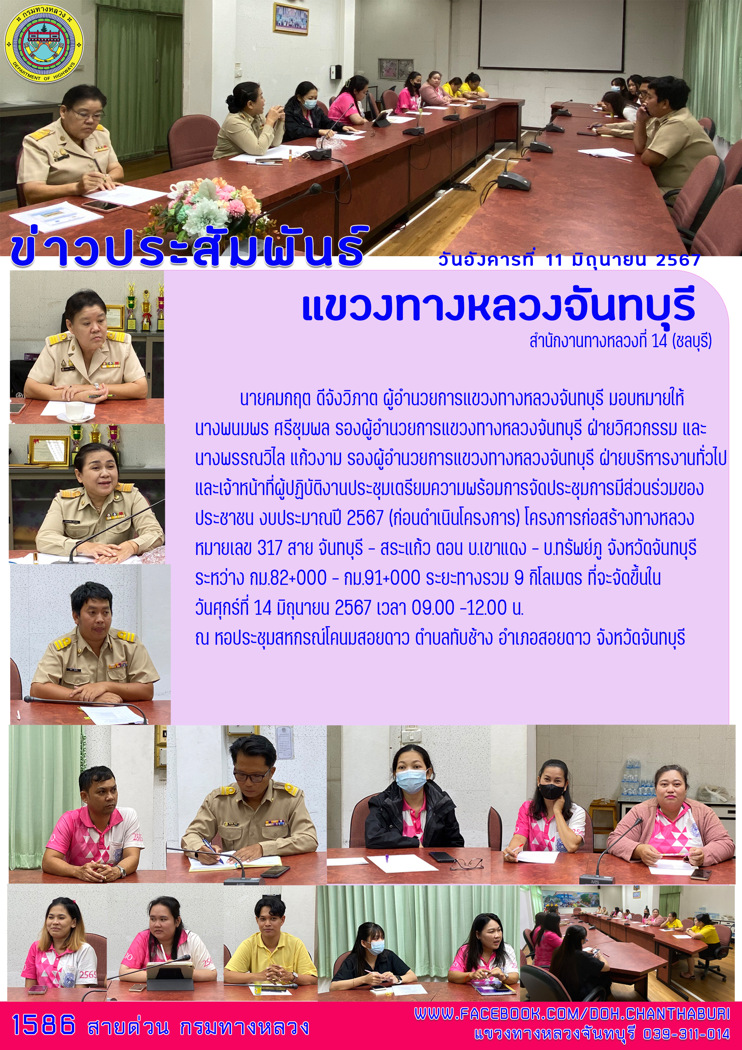 แขวงทางหลวงจันทบุรี ประชุมเตรียมความพร้อมการประชุมการมีส่วนร่วมของประชาชน โครงการก่อสร้างทางหลวงหมายเลข 317