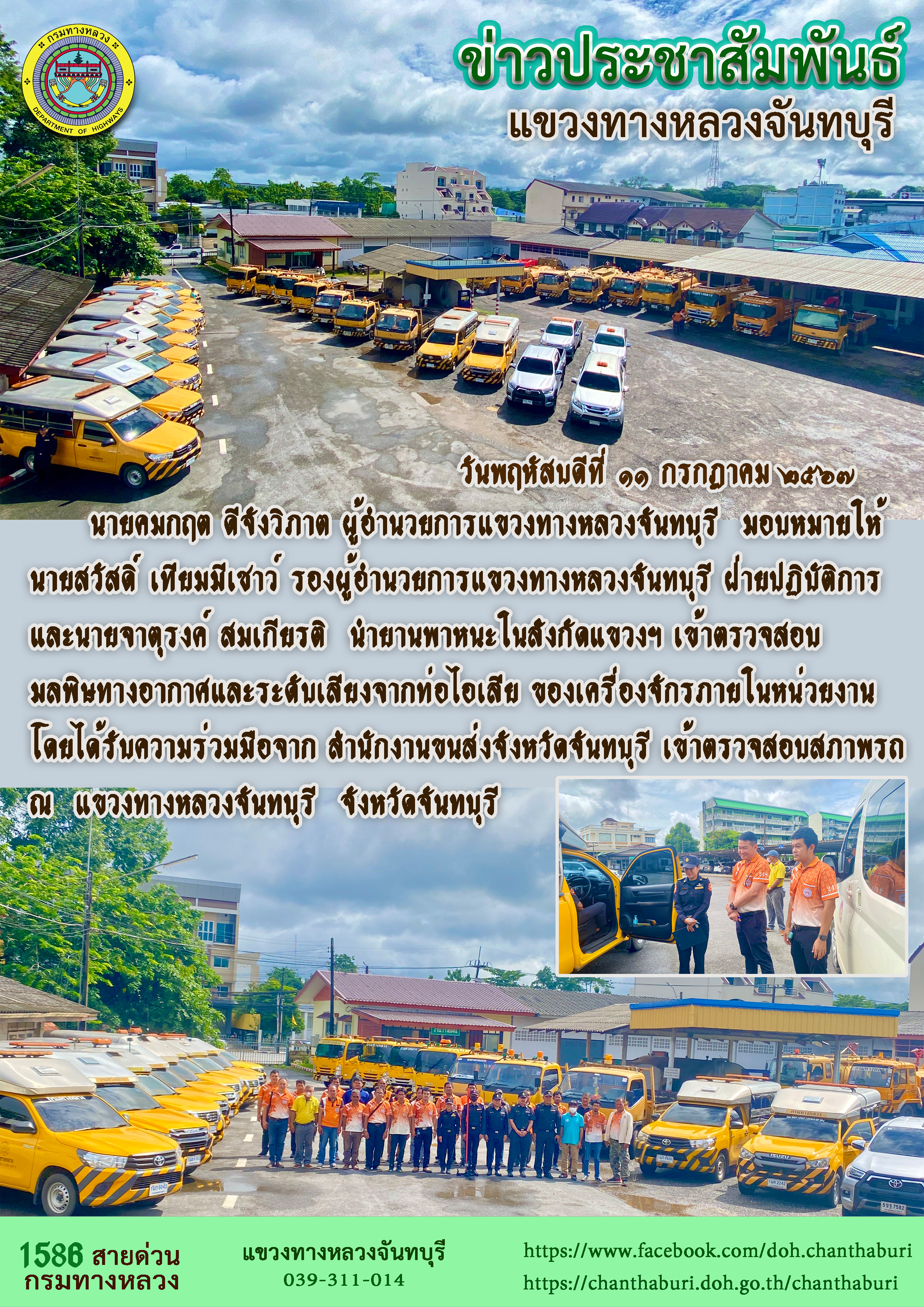แขวงทางหลวงจันทบุรี นำยานพาหนะในสังกัดแขวงฯ เข้าตรวจสอบ มลพิษทางอากาศและระดับเสียงจากท่อไอเสีย ของเครื่องจักรภายในหน่วยงาน