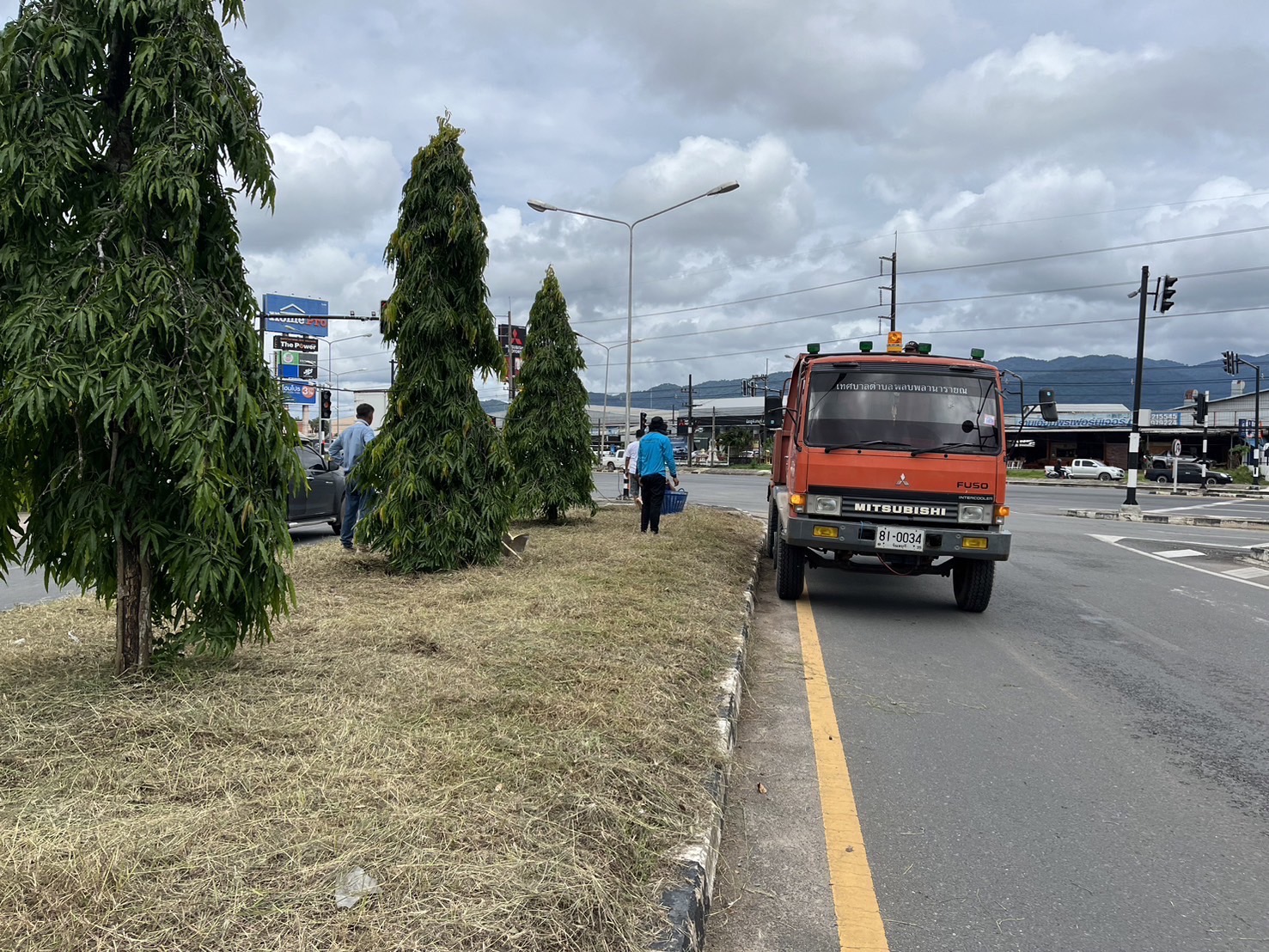 หมวดทางหลวงพลับพลาแขวงทางหลวงจันทบุรี ร่วมกับเทศบาลตำบลพลับพลานารายณ์ ดำเนินการทำความสะอาดเกาะแบ่งถนน