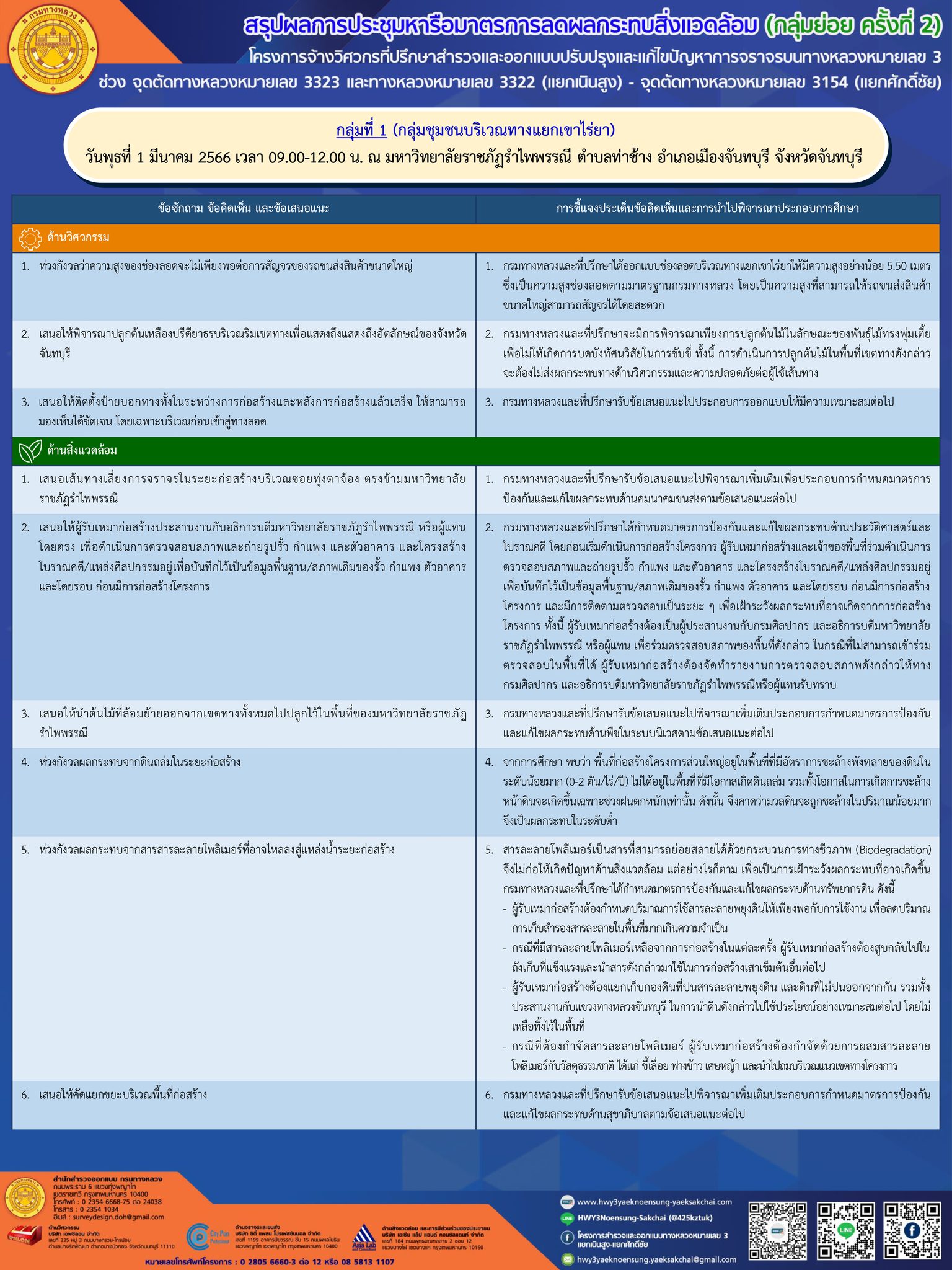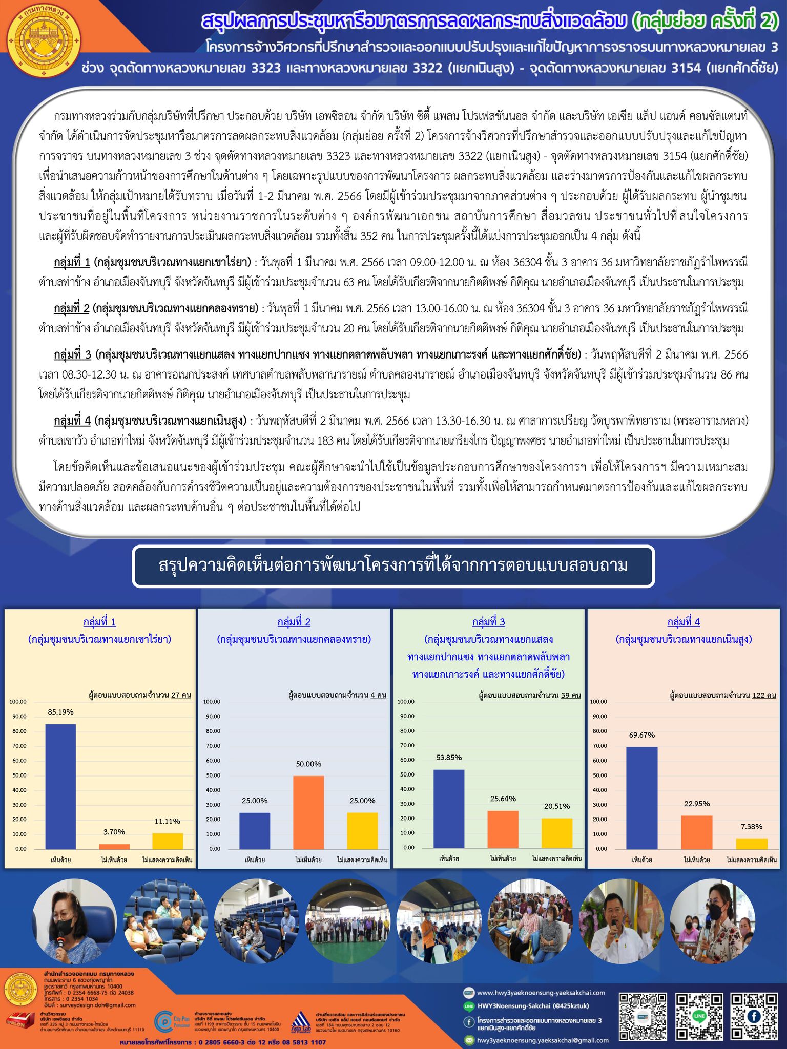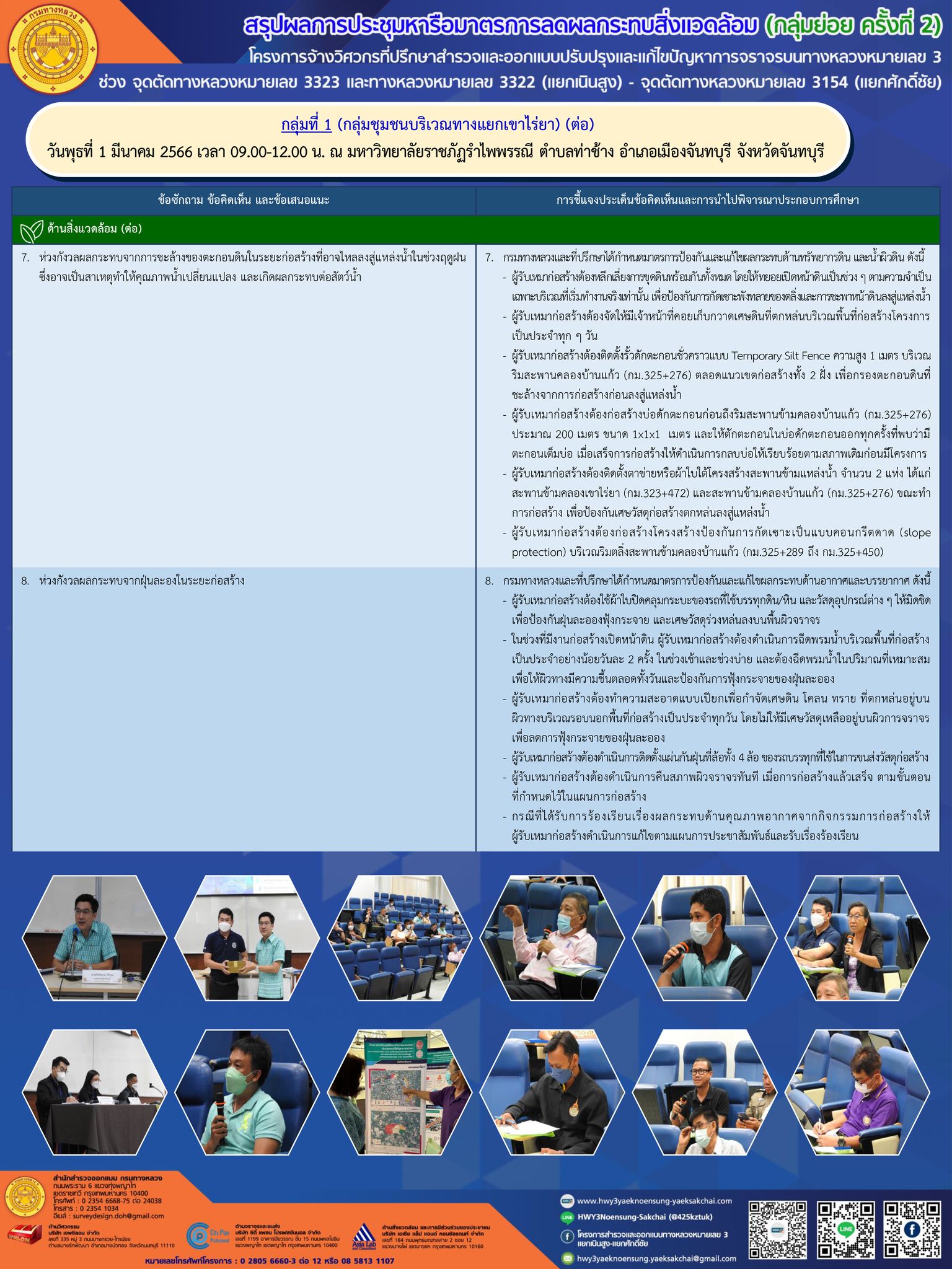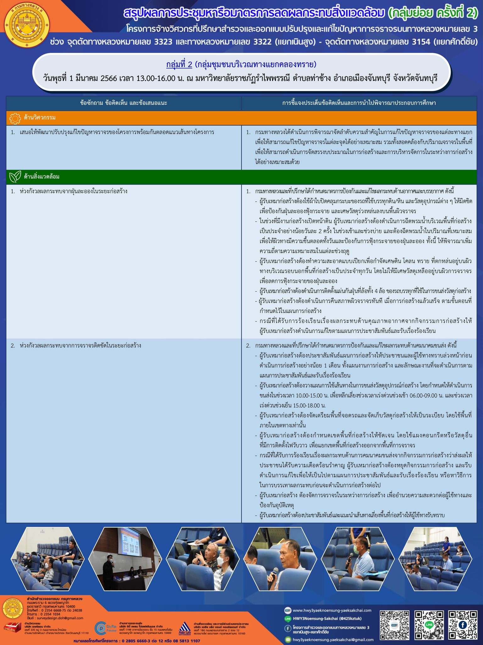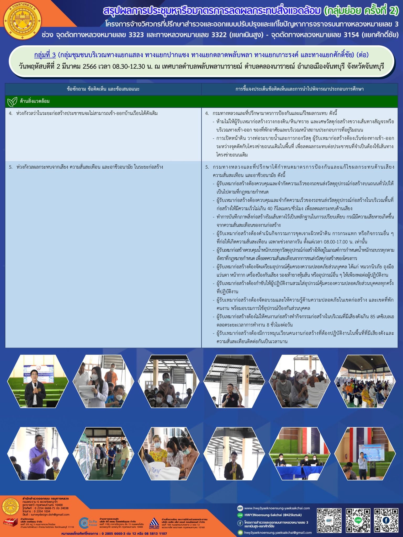 สรุปผลการประชุมหารือมาตรการลดผลกระทบสิ่งแวดล้อม (กลุ่มย่อย ครั้งที่ 2) โครงการจ้างวิศวกรที่ปรึกษาสำรวจและออกแบบปรับปรุงและแก้ไขปัญหาการจราจรบนทางหลวงหมายเลข 3 ช่วงจุดตัดทางหลวงหมายเลข 3323 และทางหลวงหมายเลข 3322 (แยกเนินสูง) - จุดตัดทางหลวงหมายเลข 3154 (แยกศักดิ์ชัย)