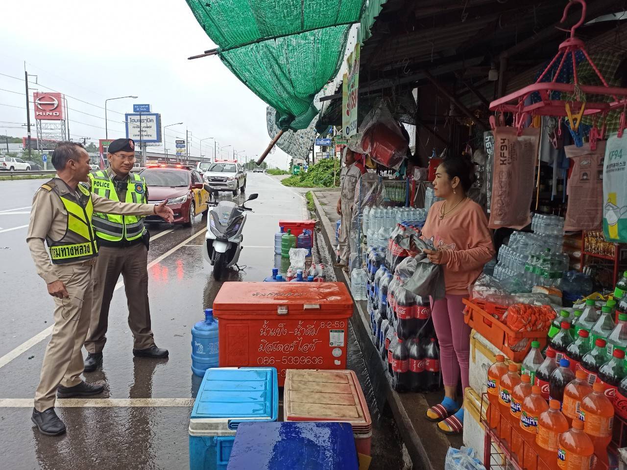 หมวดทางหลวงบางกะจะ ดำเนินการจัดระเบียบ แจ้งเตือน และทำความเข้าใจ แก่ผู้ประกอบการที่ตั้งวางขายสินค้าในเขตทางหลวง