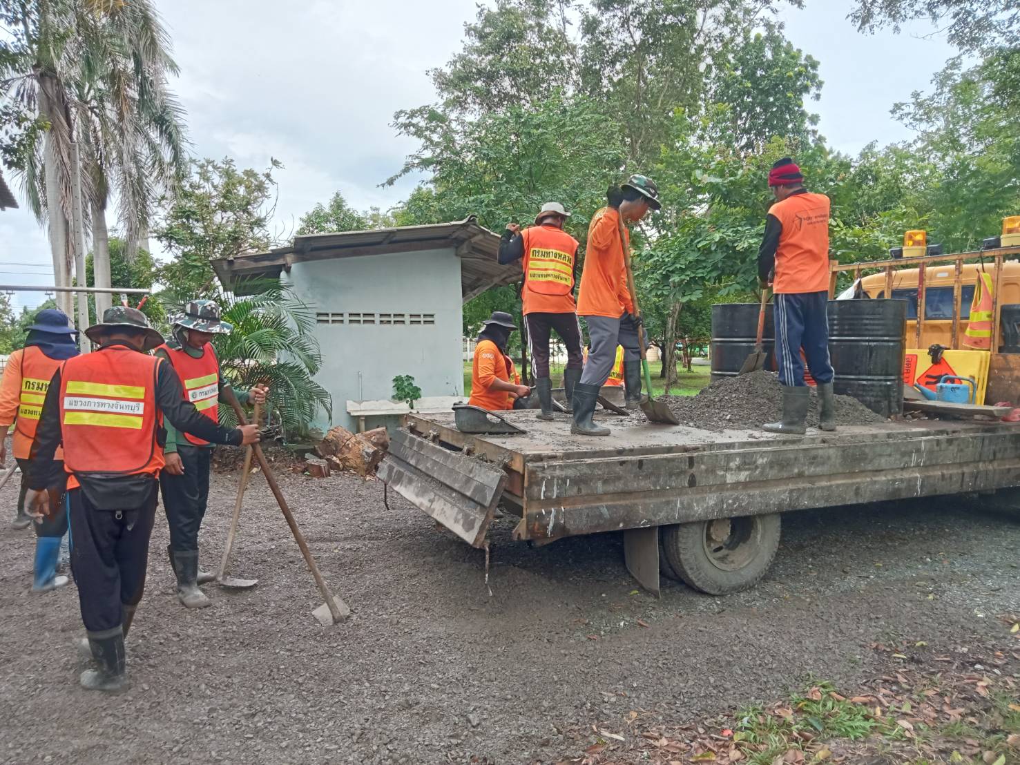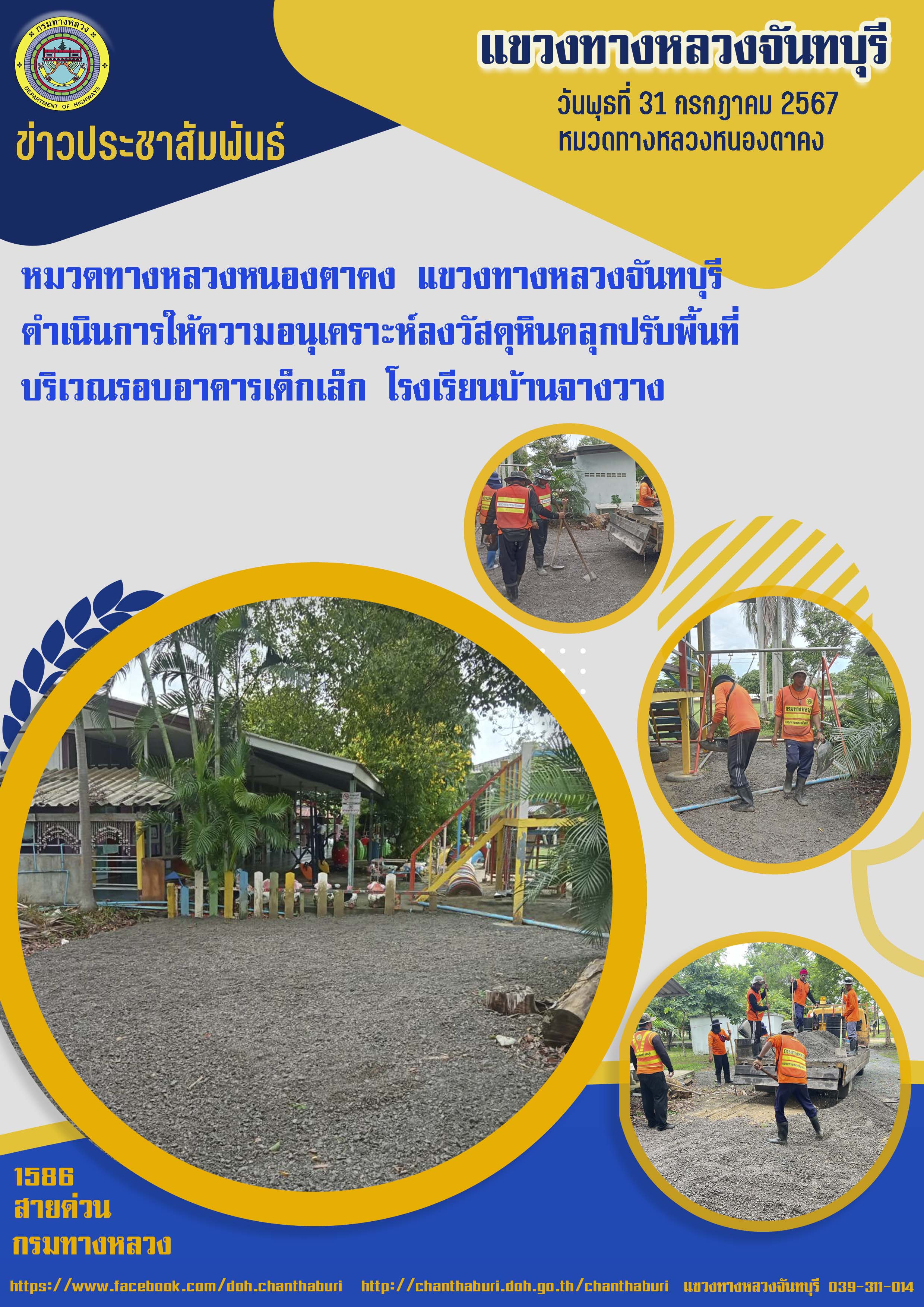 หมวดทางหลวงหนองตาคง แขวงทางหลวงจันทบุรี ดำเนินการให้ความอนุเคราะห์ลงวัสดุหินคลุกปรับพื้นที่ บริเวณรอบอาคารเด็กเล็ก โรงเรียนบ้านจางวาง