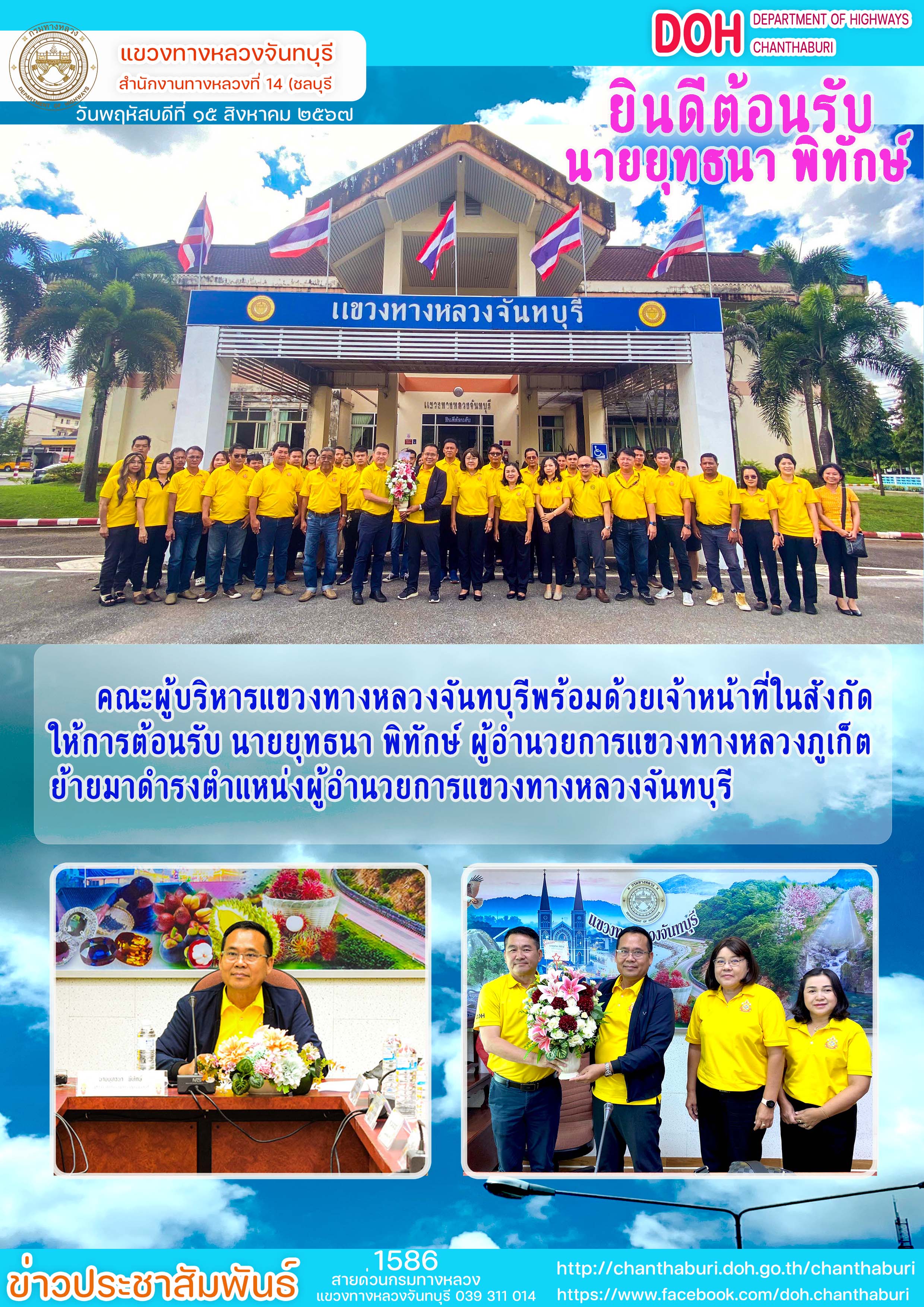 คณะผู้บริหารแขวงทางหลวงจันทบุรีพร้อมด้วยเจ้าหน้าที่ในสังกัดให้การต้อนรับ นายยุทธนา พิทักษ์