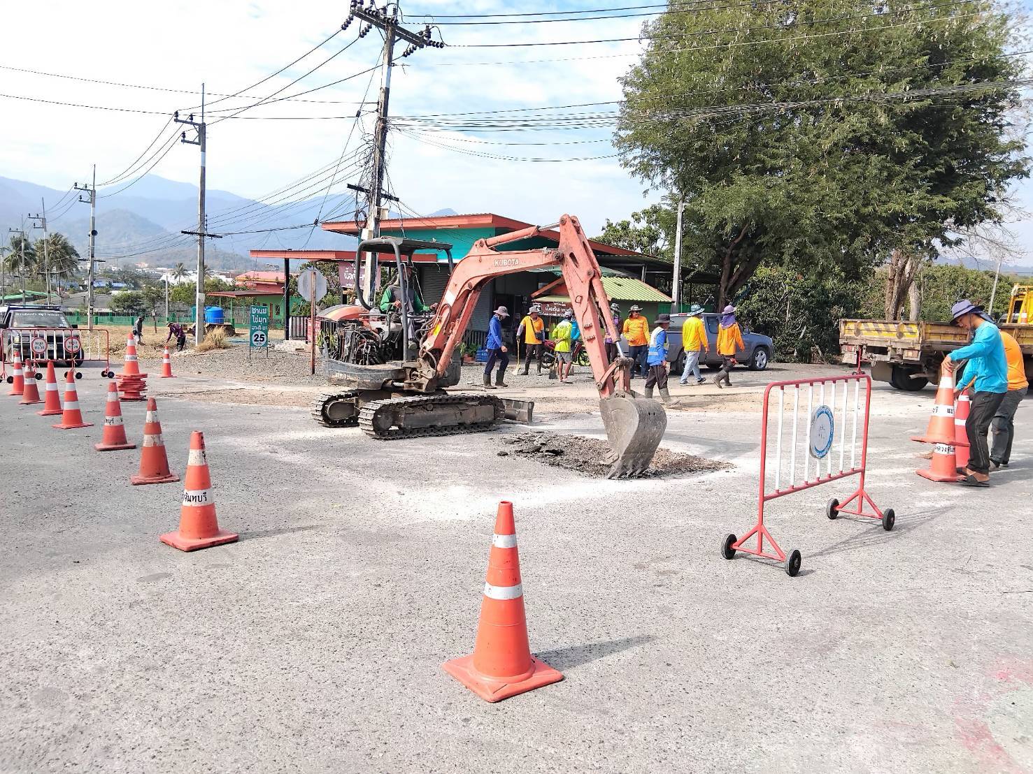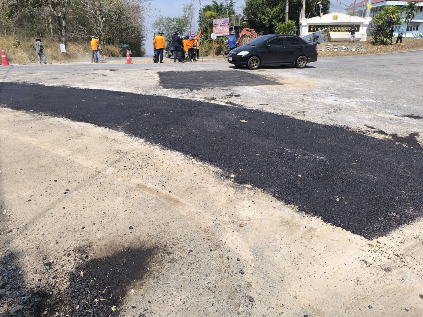 ดำเนินการซ่อมผิวทางตามเส้นทางเสด็จ หน้าที่ว่าการอำเภอสอยดาว