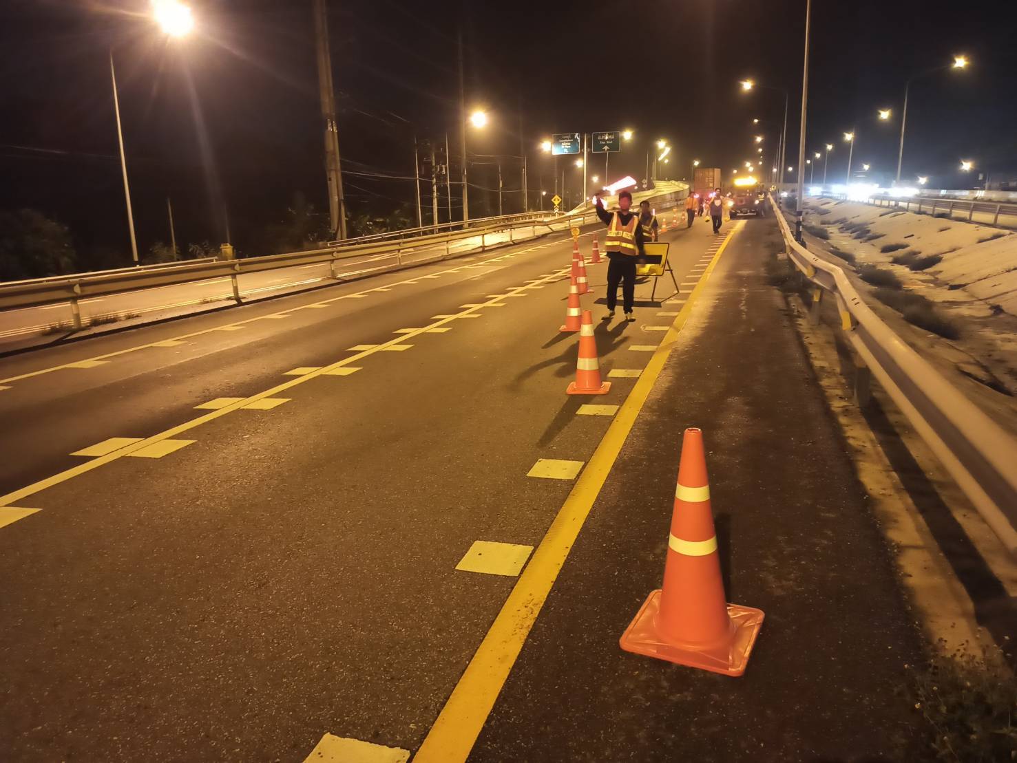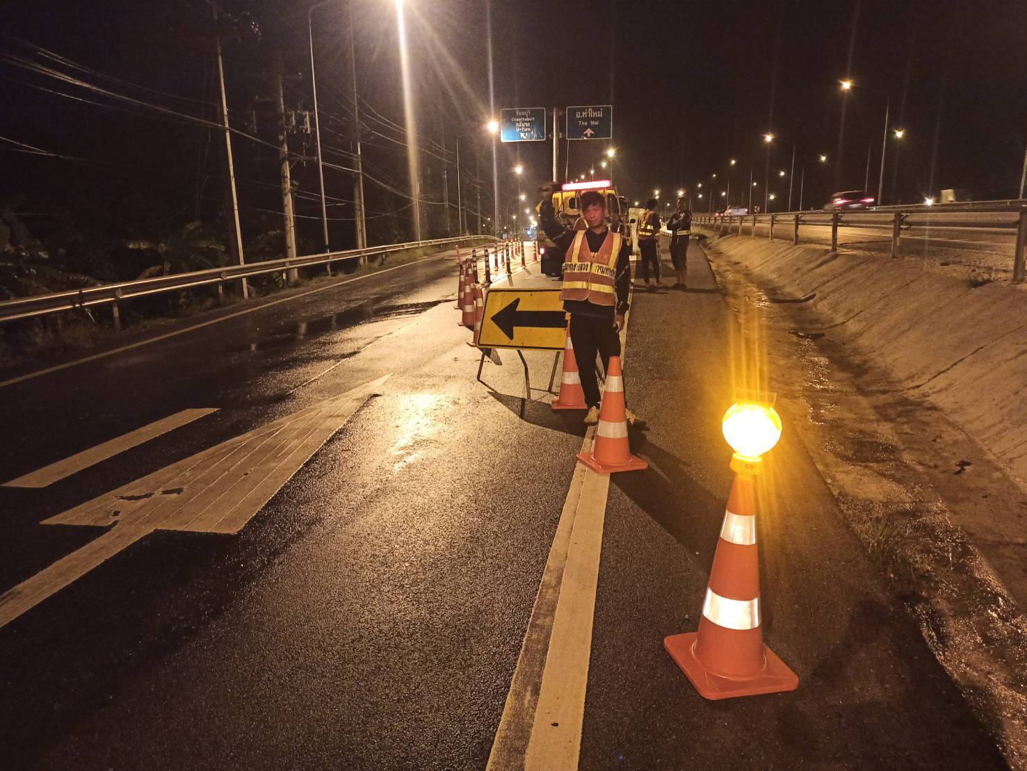 วันที่ 17 พฤษภาคม 2568 เวลา 19.00 น. - 01.00 น.หมวดทางหลวงบางกะจะ แขวงทางหลวงจันทบุรี ดำเนินการจัดเตรียมเจ้าหน้าที่ และอุปกรณ์อำนวยความปลอดภัย อำนวยการด้านการจราจรให้กับ สำนักมาตรฐานและประเมินผล , สถาบันการขนส่ง จุฬาลงกรณ์มหาวิทยาลัย เก็บข้อมูลงานปรับปรุงทางแยกจุดตัดทางหลวงหมายเลข 3 กับทางหลวงหมายเลข 3152 ( แยกเข้า อ.ท่าใหม่ ) ทางหลวงหมายเลข 3 กม.314+300 - กม.316+290 ทางหลวงหมายเลข 3152 กม.0+000 - กม.1+110