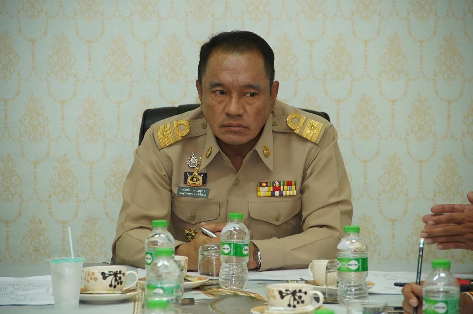 นายกรณ์ วัฒนชัย ผู้อำนวยการส่วนสำรวจและออกแบบ สำนักงานทางหลวงที่ ๑๔ นางทิพย์ธารา จิรเจริญสมบัติ รองผู้อำนวยการแขวงทางหลวงจันทบุรี ฝ่ายวิศวกรรม นายสราวุฒิ วงศ์ประทุม นายช่างโยธาชำนาญงาน นายภูชิสส์ พันธรัตน์ วิศวกรโยธาปฏิบัติการ นายกฤษฎา จันทร์มณี หัวหน้าหมวดทางหลวงหนองตาคง เข้าร่วมการประชุม โครงการเพิ่มประสิทธิภาพการค้าขายชายแดนและยกระดับเศรษฐกิจชายแดนด้านจังหวัดจันทบุรี กิจกรรมบูรณะทางผิวแอสฟัลต์ ในทางหลวงหมายเลข 3405 ตอน บ้านแหลม - ทุ่งขนาน พร้อมด้วย ดร.รัฐวิทย์ ตั้งเกียรติพชร นายกสมาคมการค้าและการท่องเที่ยวชายแดนไทย - กัมพูชา จันทบุรี ผู้นำท้องถิ่น ร่วมประชุม โดยมีนายธวัชชัย นามสมุทร รองผู้ว่าราชการจังหวัดจันทบุรี เป็นประธานฯ ในวันจันทร์ที่ 9 มิถุนายน 2568 ณ ห้องประชุม สำนักงานตลาดบ้านแหลม