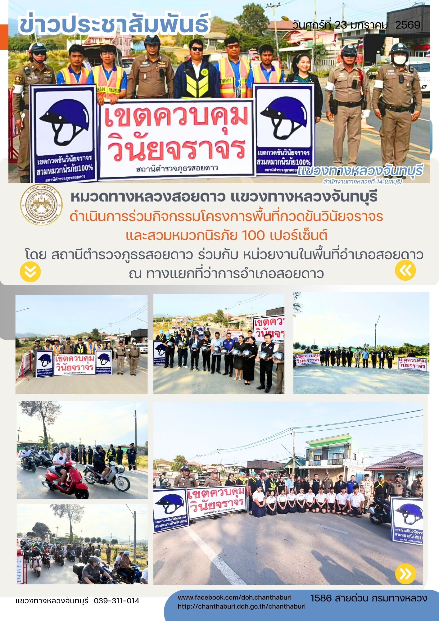 หมวดทางหลวงสอยดาว แขวงทางหลวงจันทบุรี ดำเนินการร่วมกิจกรรมโครงการพื้นที่กวดขันวินัยจราจรและสวมหมวกนิรภัย 100 เปอร์เซ็นต์