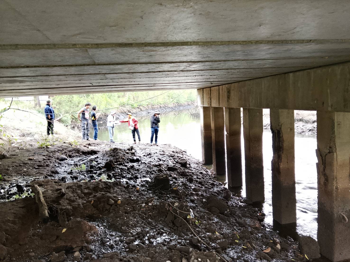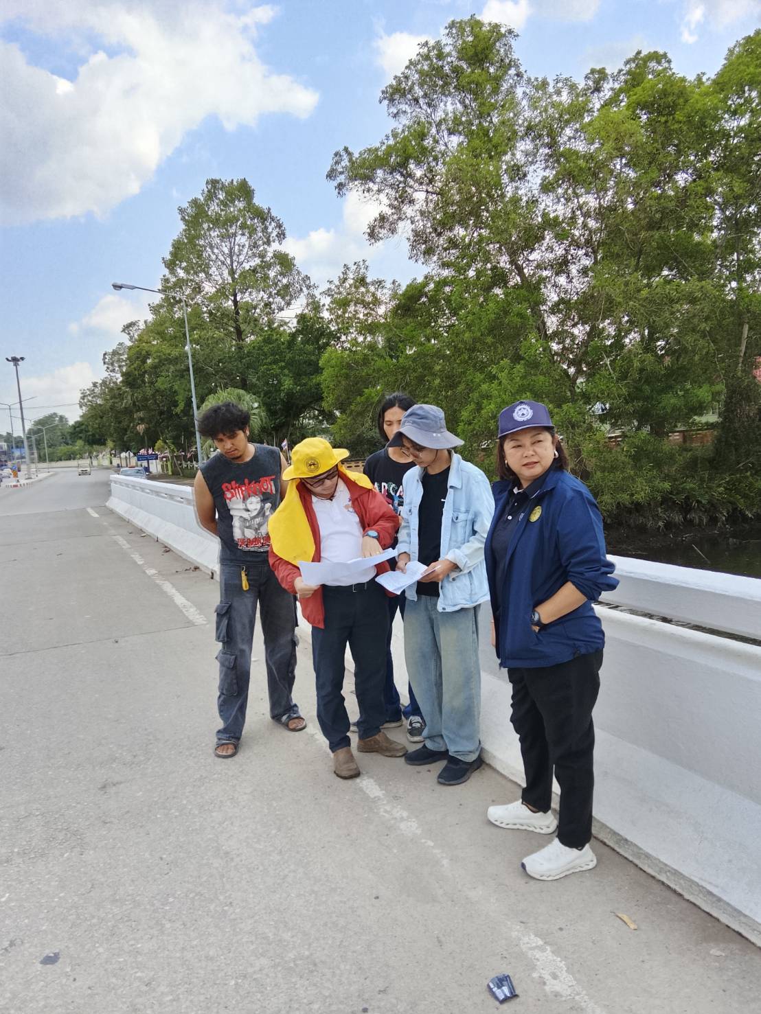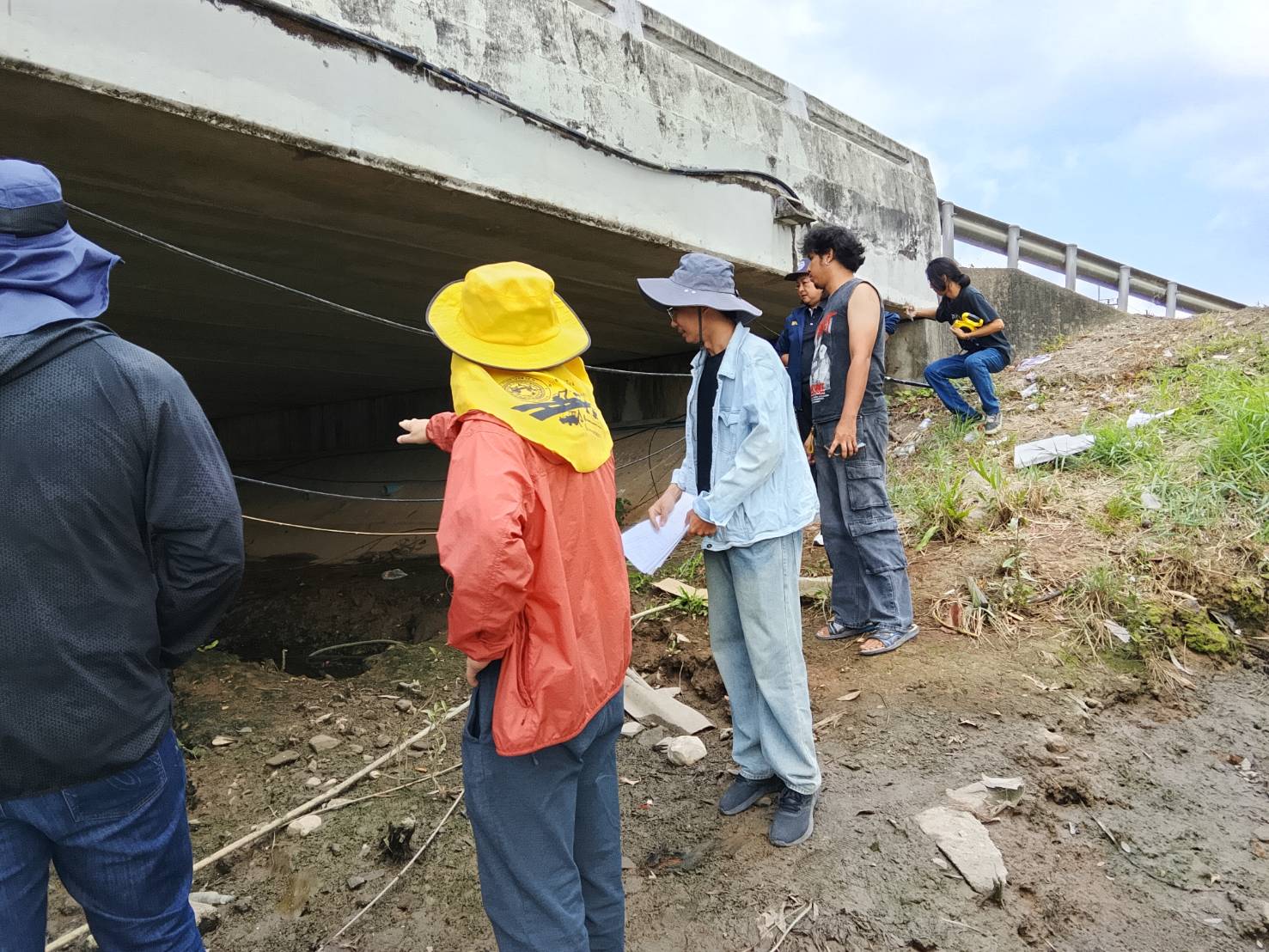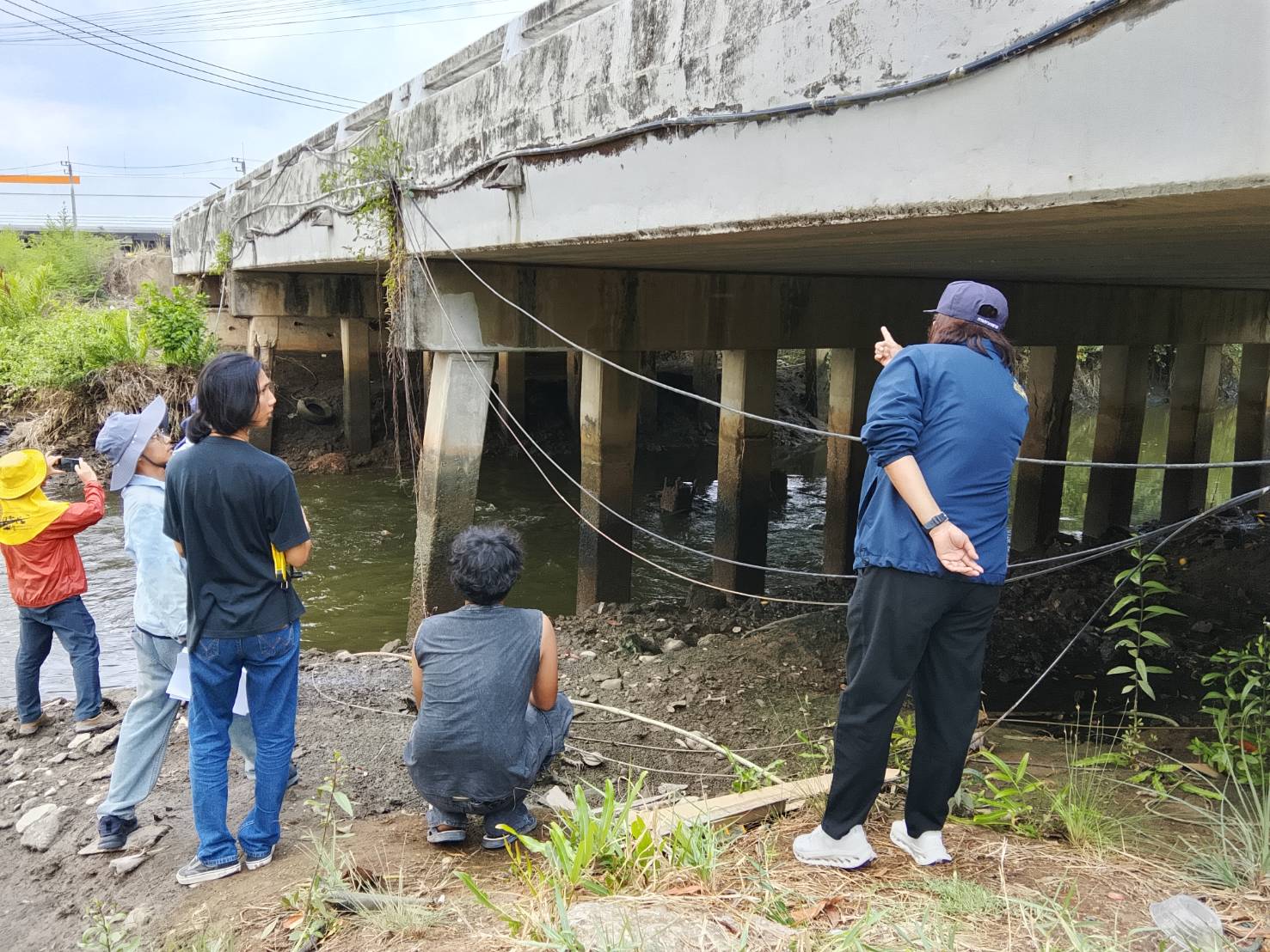 นางทิพย์ธารา จิรเจริญสมบัติ รองผู้อำนวยการแขวงทางหลวงจันทบุรี ฝ่ายวิศวกรรม, นายสราวุฒิ วงศ์ประทุม นายช่างโยธาชำนาญงาน, นายภูชิสส์ พันธรัตน์ วิศวกรโยธาปฎิบัตการ ลงพื้นสำรวจสะพานข้ามคลอง
