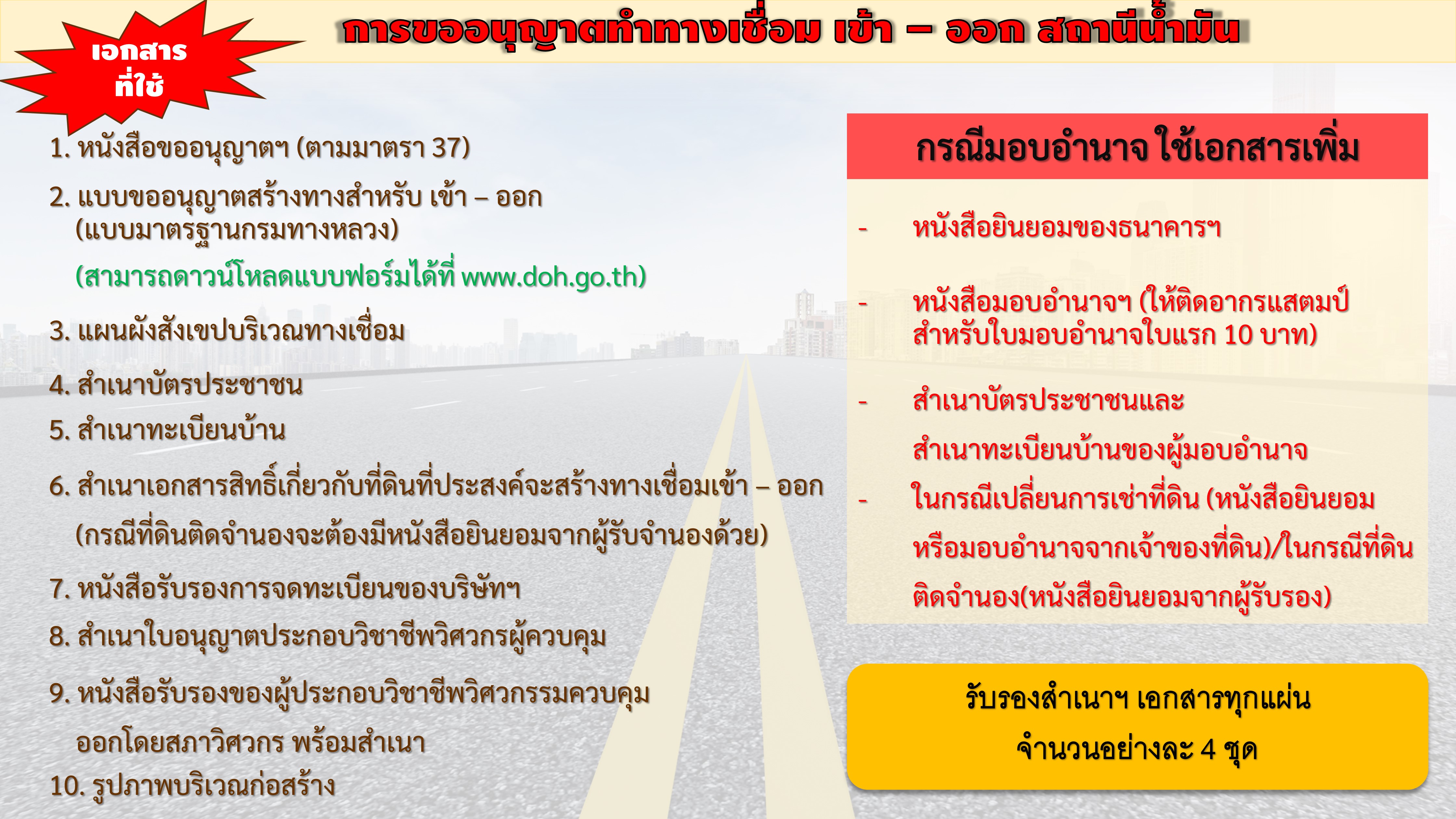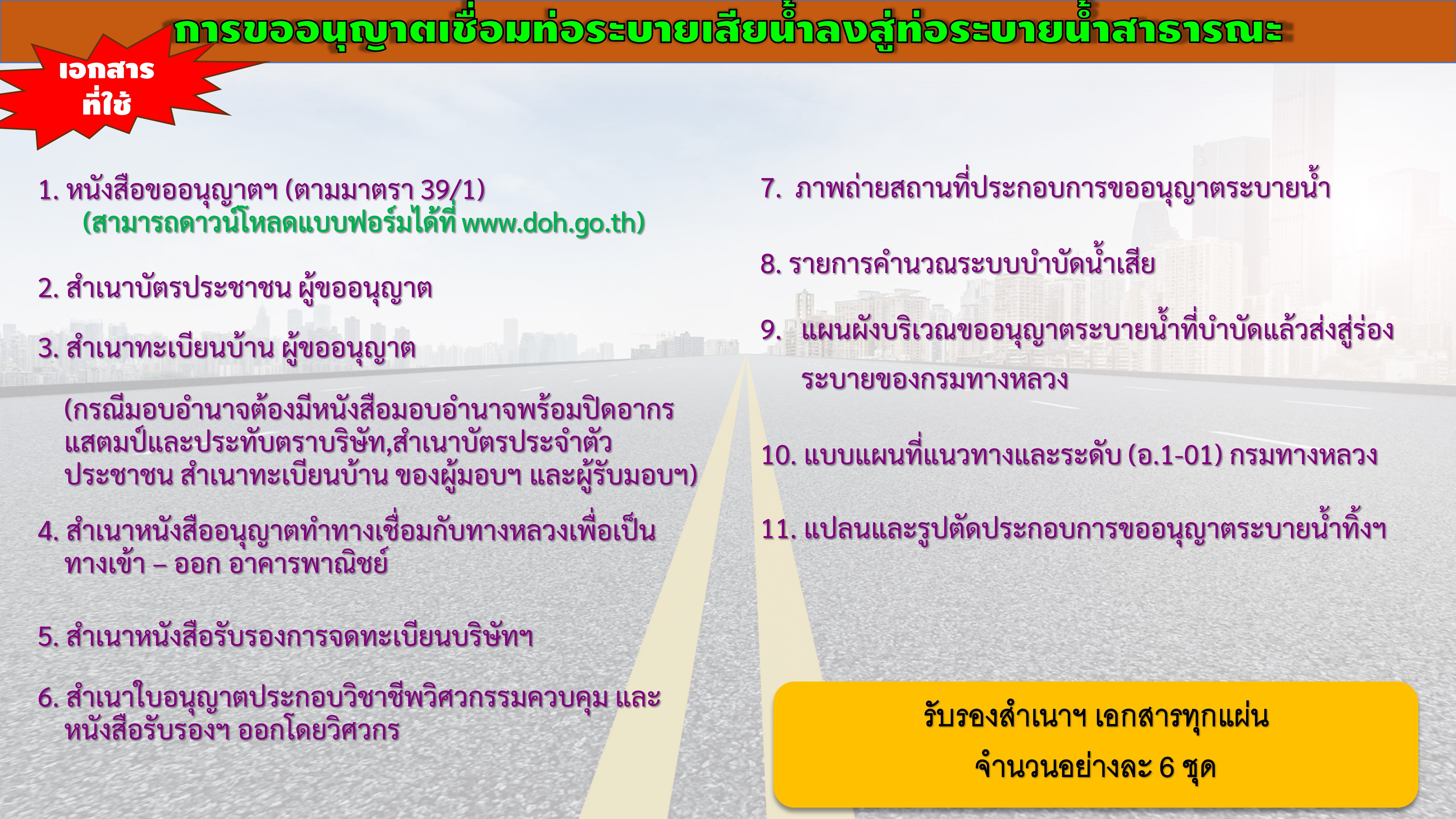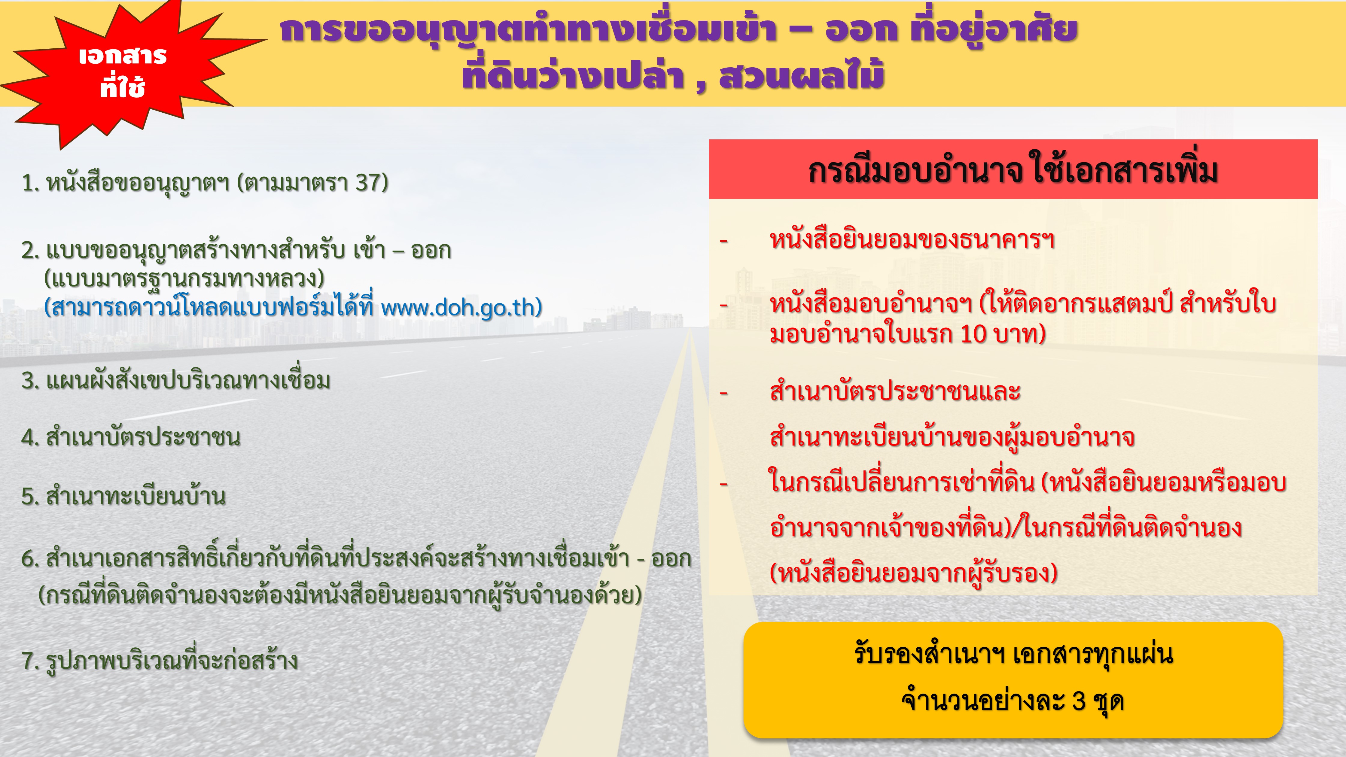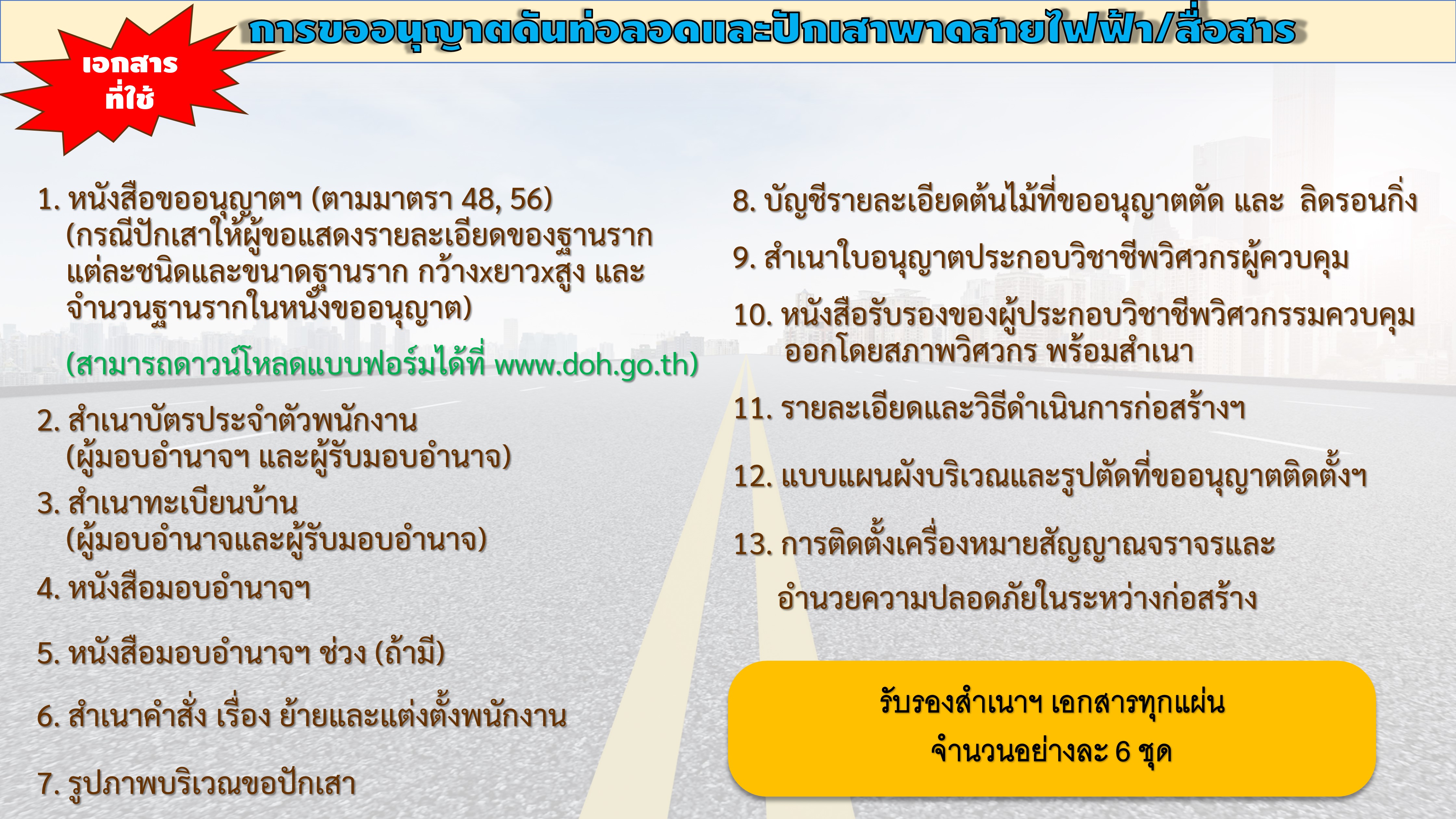| คำขออนุญาต 47 คำขออนุญาตดำเนินการใดๆ ในเขตทางหลวง ศาลา ป้าย ก่อสร้างถนน ปรับปรุง | 175 | ดาวน์โหลด |