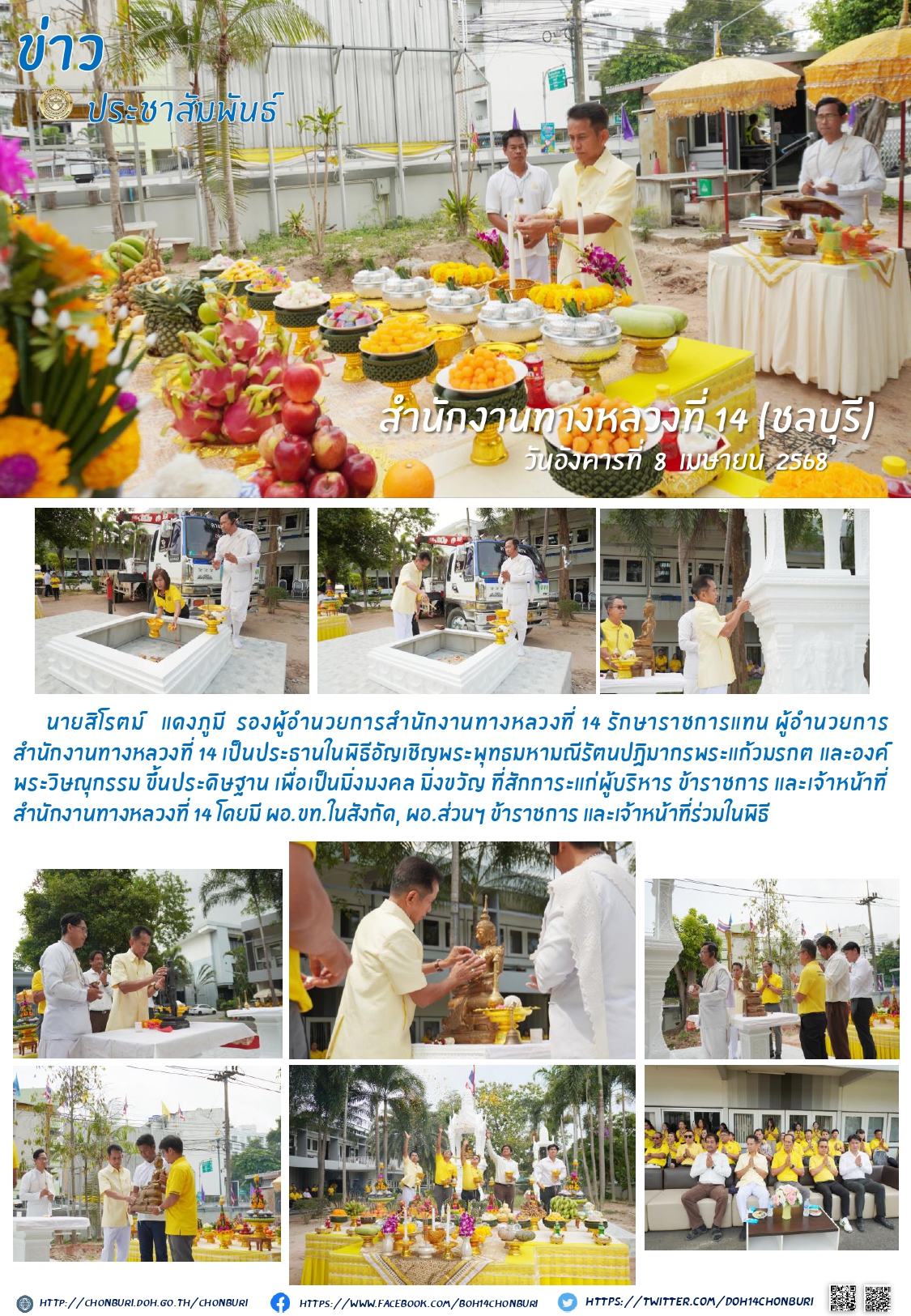 พิธีอัญเชิญพระพุทธมหามณีรัตนปฏิมากรพระแก้วมรกต และองค์พระวิษณุกรรม ขึ้นประดิษฐาน บริเวณหน้าสำนักงาน(เก่า) สำนักงานทางหลวงที่ 14