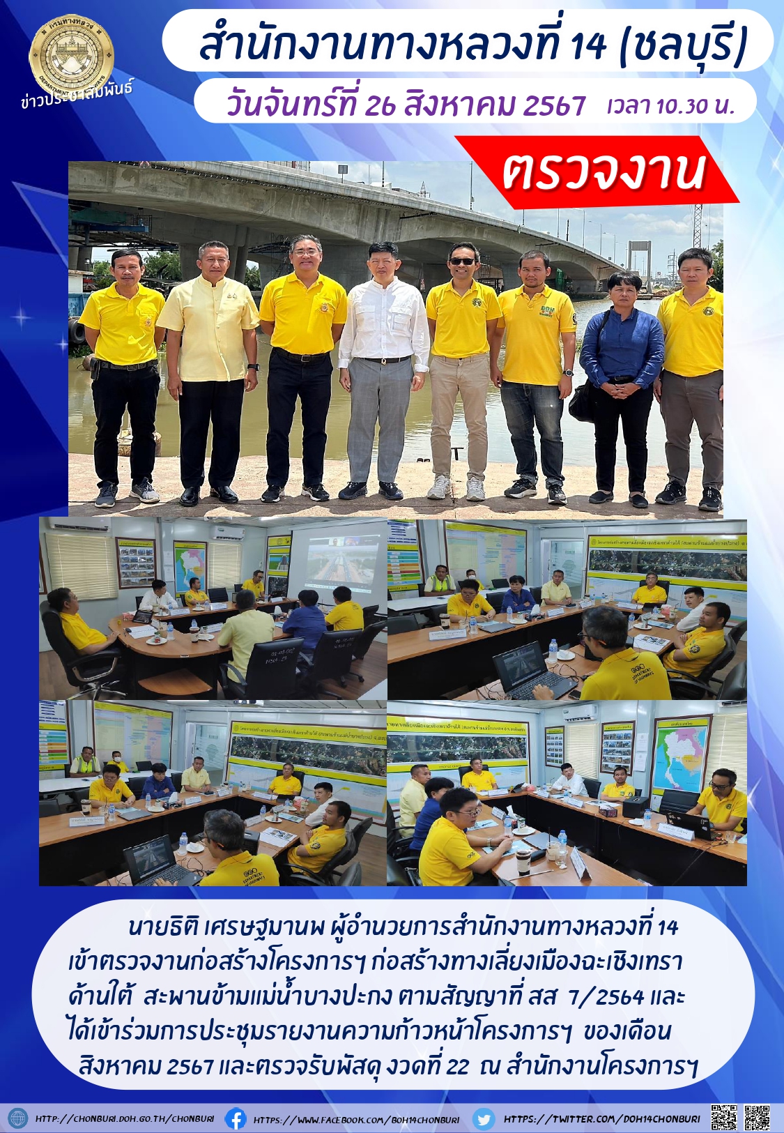 ตรวจงานโครงการก่อสร้าง ทล.365 ทางเลี่ยงเมืองฉะเชิงเทราด้านใต้ (สะพานข้ามแม่น้ำบางปะกง)