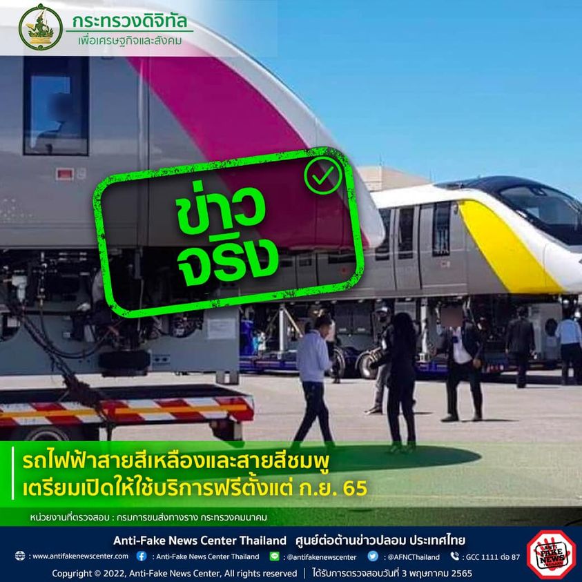 รถไฟฟ้าสายสีเหลืองและสายสีชมพู เตรียมเปิดให้ใช้บริการฟรีตั้งแต่เดือนกันยายน 2565