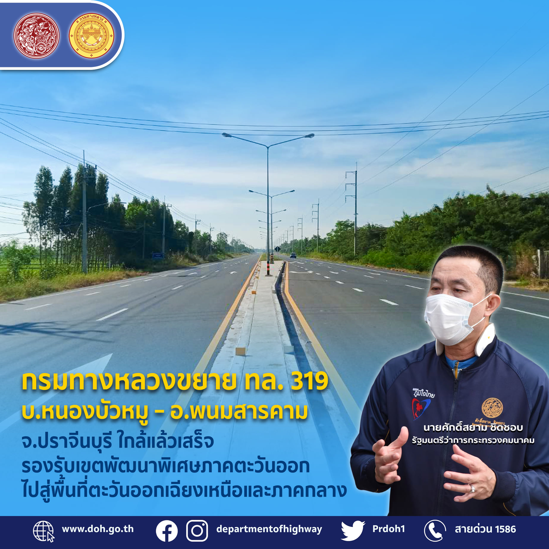 กรมทางหลวง ขยาย ทล.319 บ้านหนองบัวหมู - อำเภอพนมสารคาม จังหวัดปราจีนบุรี ใกล้แล้วเสร็จ รองรับเขตพัฒนาเศรษฐกิจพิเศษภาคตะวันออกไปสู่พื้นที่ตะวันออกเฉียงเหนือและภาคกลาง