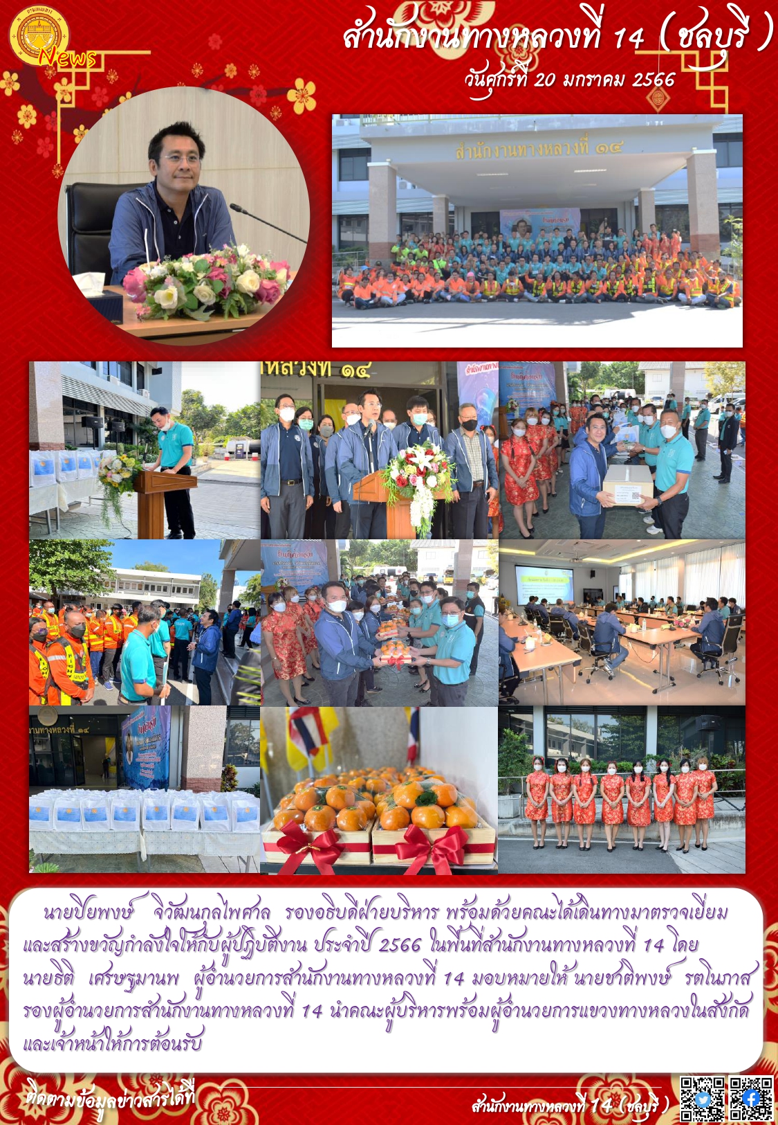 ในพื้นที่สำนักงานทางหลวงที่ 14 โดย นายธิติ เศรษฐมานพ ผู้อำนวยการสำนักงานทางหลวง