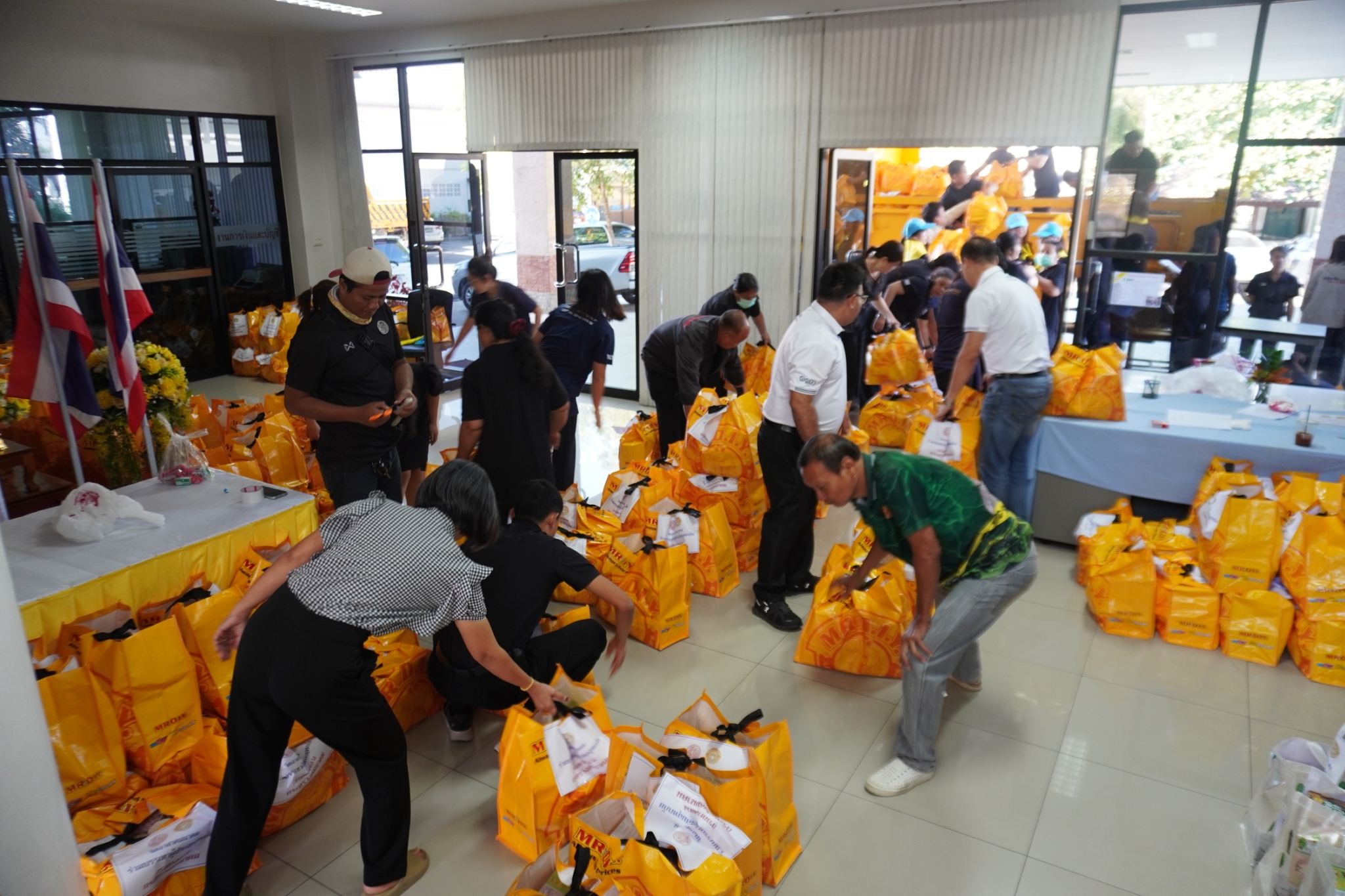 ได้ร่วมกับผู้บริหาร ข้าราชการ พนักงานและ ลูกจ้าง จัดทำถุงยังชีพ จำนวน 1,000 ชุด