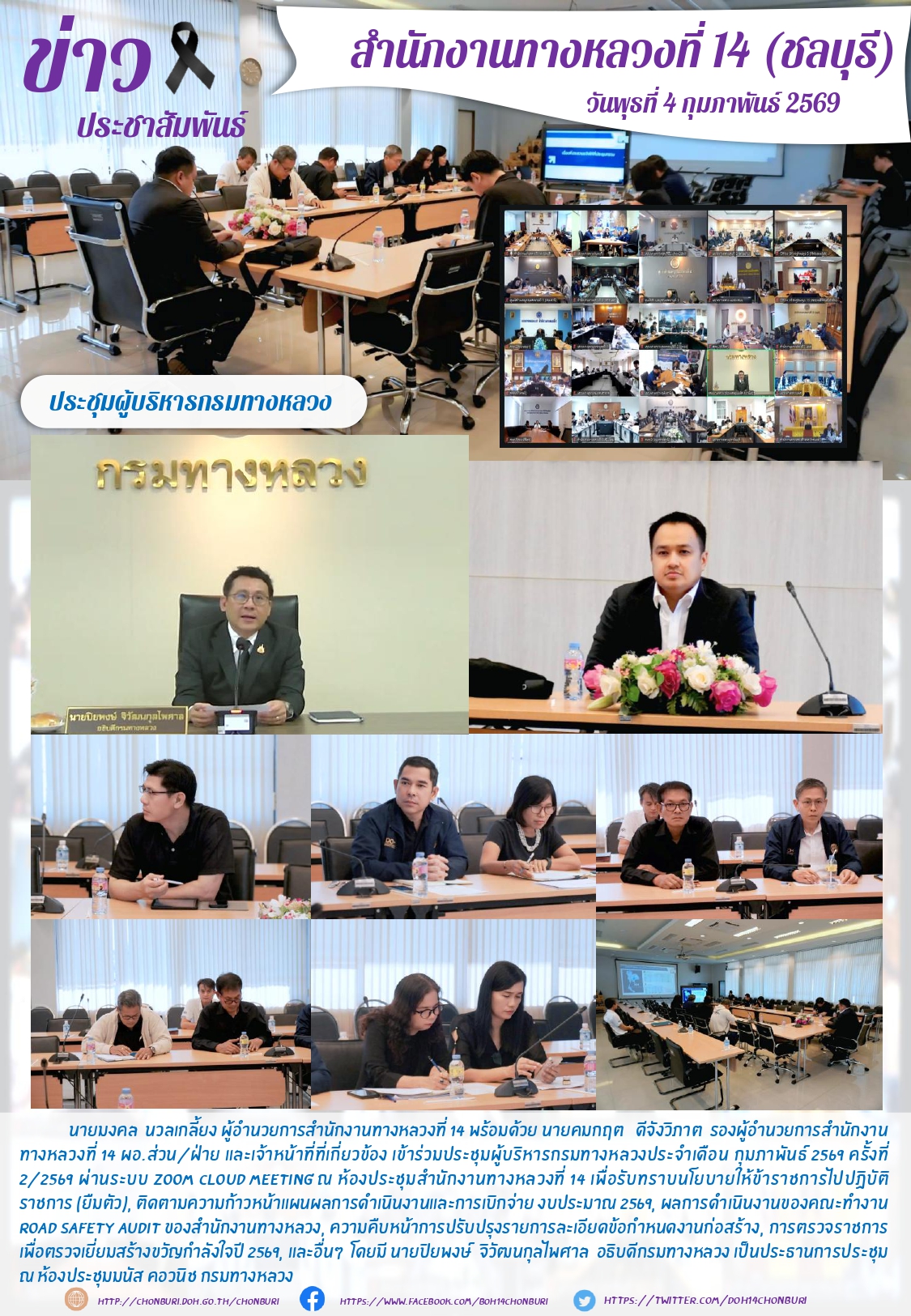 เข้าร่วมประชุมผู้บริหารกรมทางหลวงประจำเดือน กุมภาพันธ์ 2569 ครั้งที่ 2/2569 ผ่านระบบ Zoom cloud meeting