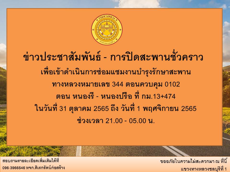 ข่าวประชาสัมพันธ์ การปิดสะพานชั่วคราว