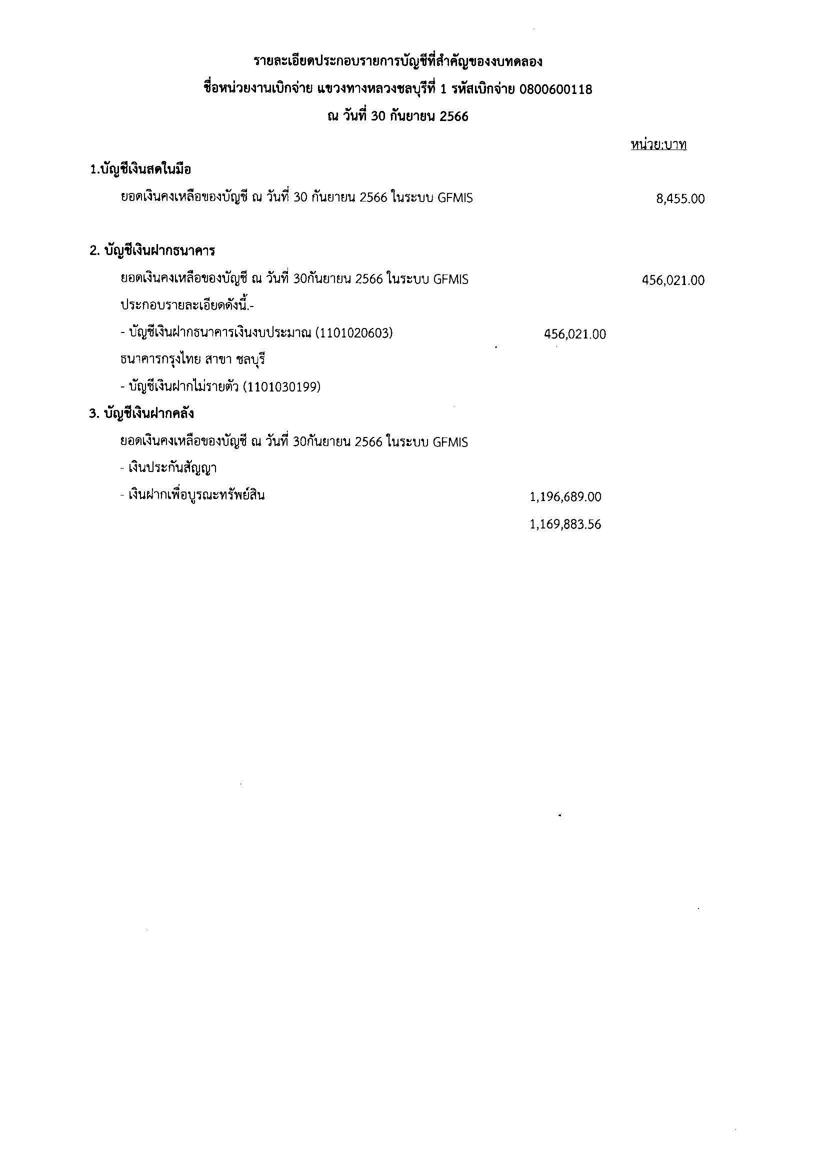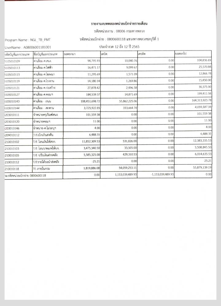 รายงานงบทดลองหน่วยเบิกจ่ายรายเดือน