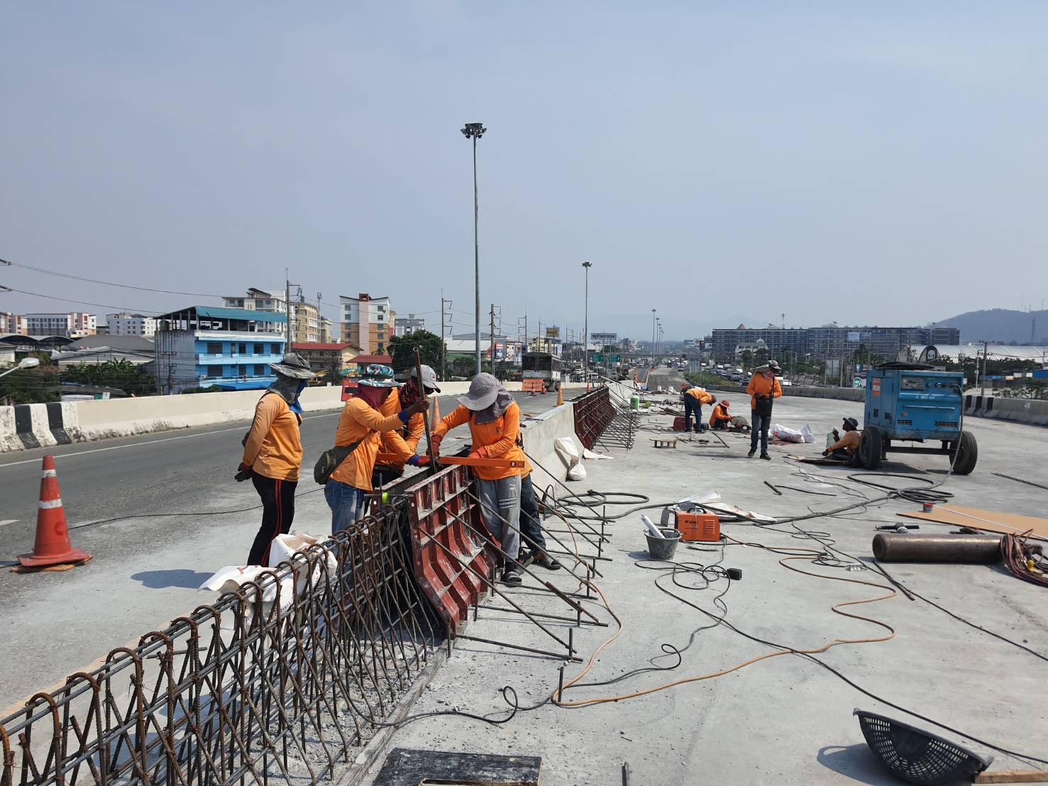 วันจันทร์ที่ 22 กุมภาพันธ์ 2564 รายงานติดตามผลการดำเนินงานซ่อมสะพานต่างระดับหนองไม้แดง บนทางหลวงหมายเลข 361 ตอน ทางเลี่ยงเมืองชลบุรี ที่ กม.0+000 ด้านขวาทาง ขาไปกรุงเทพฯ
