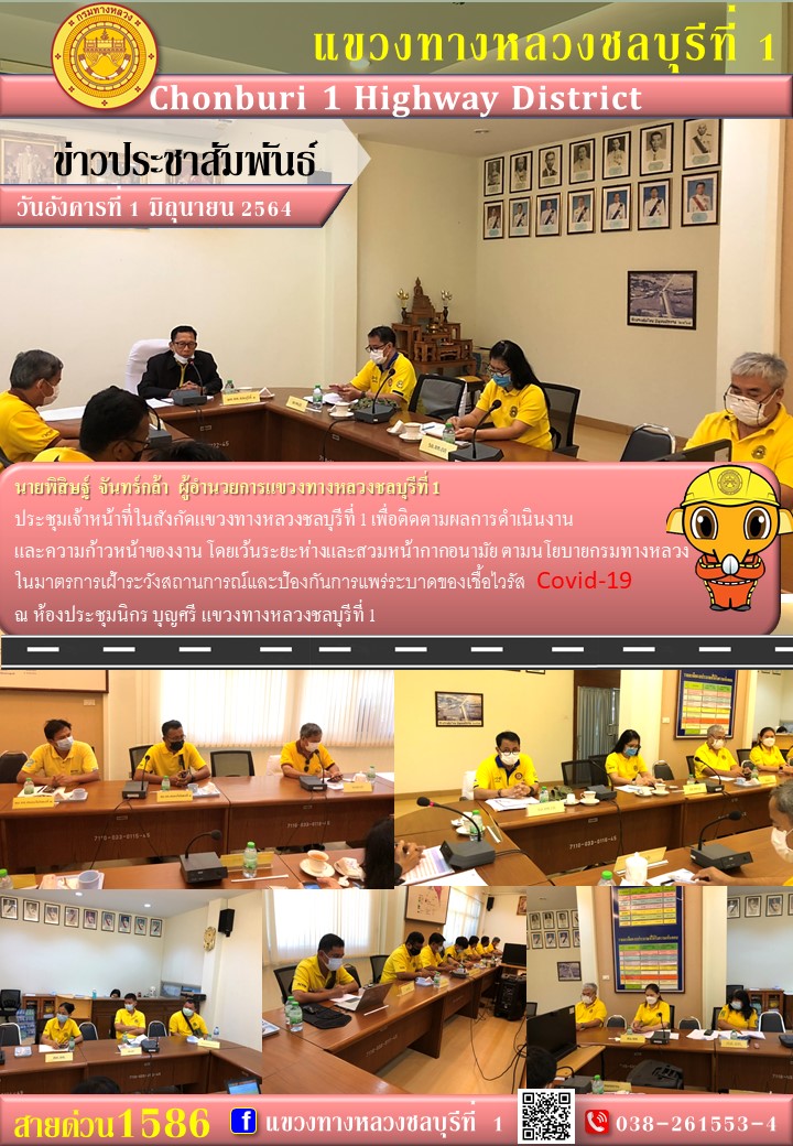 1 มิถุนายน 2564 ประชุมประจำเดือน หัวหน้าหน่วยงานในสังกัดแขวงทางหลวงชลบุรีที่ 1