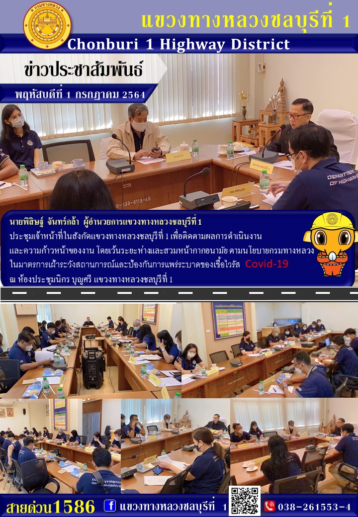 ประชุมเจ้าหน่้าที่ในสังกัดแขวงทางหลวงชลบุรีที่ 1 ประจำเดือน กรกฏาคม 2564