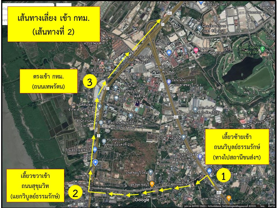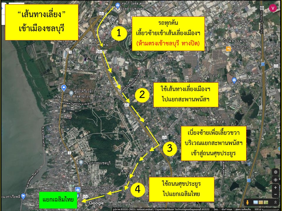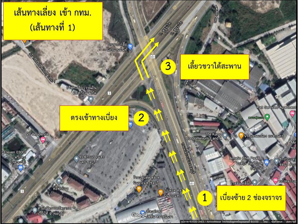 ?? แขวงทางหลวงชลบุรีที่ 1 ต้องขออภัยในความไม่สะดวกมา ณ ที่นี้ และขอให้ประชาชนโปรดหลีกเลี่ยงเส้นทางดังกล่าว และหากมีความจำเป็นต้องเดินทาง โปรดระมัดระวังและเผื่อระยะเวลาในการเดินทาง รวมทั้งขอความร่วมมือผู้ใช้ทางปฏิบัติตามป้ายเตือน ป้ายแนะนำทางเลี่ยง และสัญญาณไฟเตือนที่ติดตั้งไว้เพื่อความปลอดภัยแก่ผู้ใช้ทาง โดยแขวงทางหลวงชลบุรีที่ 1 ได้จัดทำเส้นทางแนะนำและเส้นทางเลี่ยงเข้า กทม.แนบมาพร้อมนี้