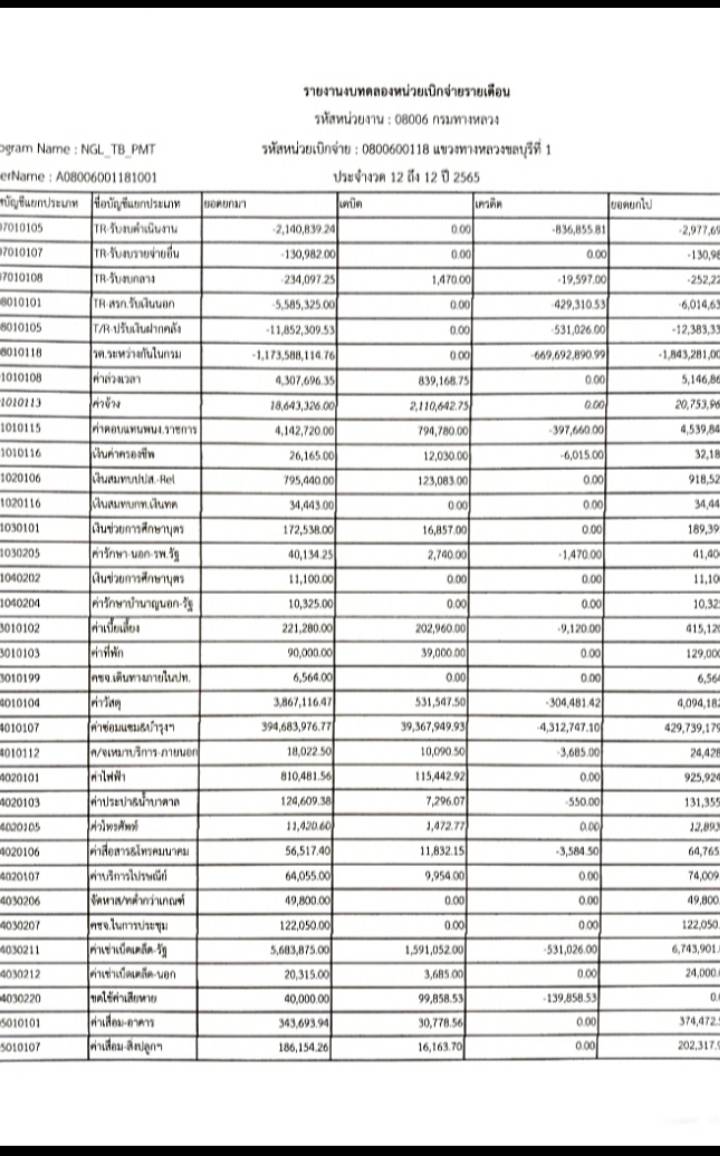 ข้อมูลข่าว : รายงานงบทดลองหน่วยเบิกจ่ายรายเดือน