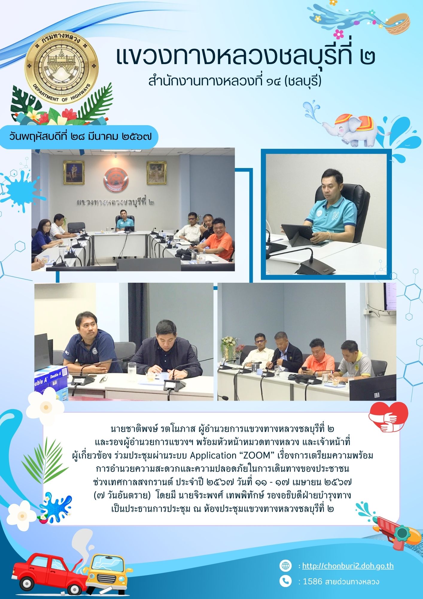 ประชุมผ่านระบบ Application “ZOOM” เรื่องการเตรียมความพร้อมการอำนวยความสะดวกและความปลอดภัยในการเดินทางของประชาชน ช่วงเทศกาลสงกรานต์ ประจำปี ๒๕๖๗ วันที่ ๑๑ - ๑๗ เมษายน ๒๕๖๗
