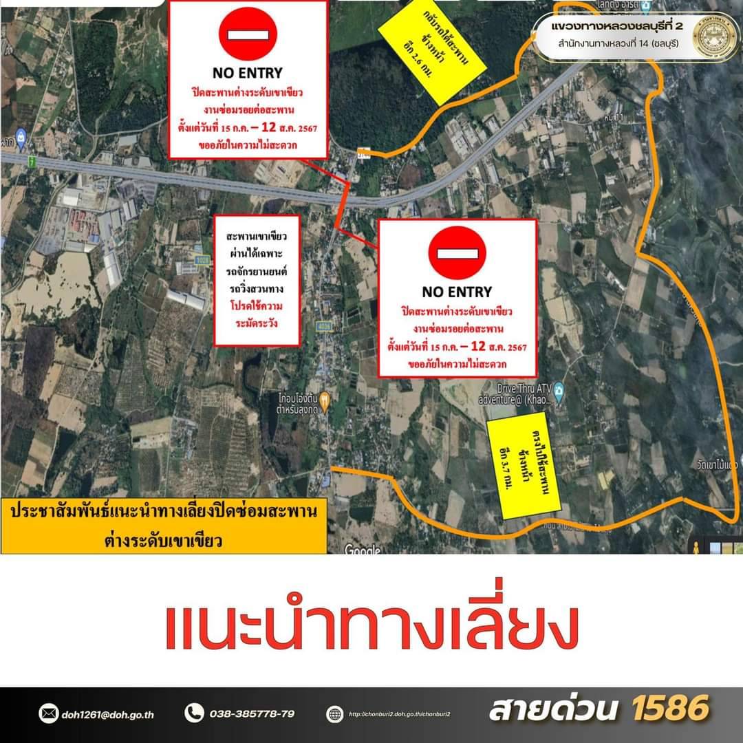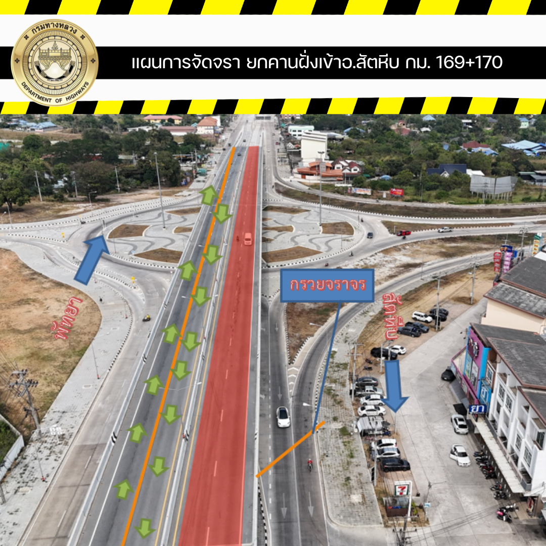 ประชาสัมพันธ์ แจ้งปิดการจราจรเพื่อทำงานก่อสร้างสะพานลอยคนเดินข้ามหรือทางลอด บริเวณทางหลวงหมายเลข 3 ตอนพัทยา - พลูตาหลวง ที่ กม.171+450