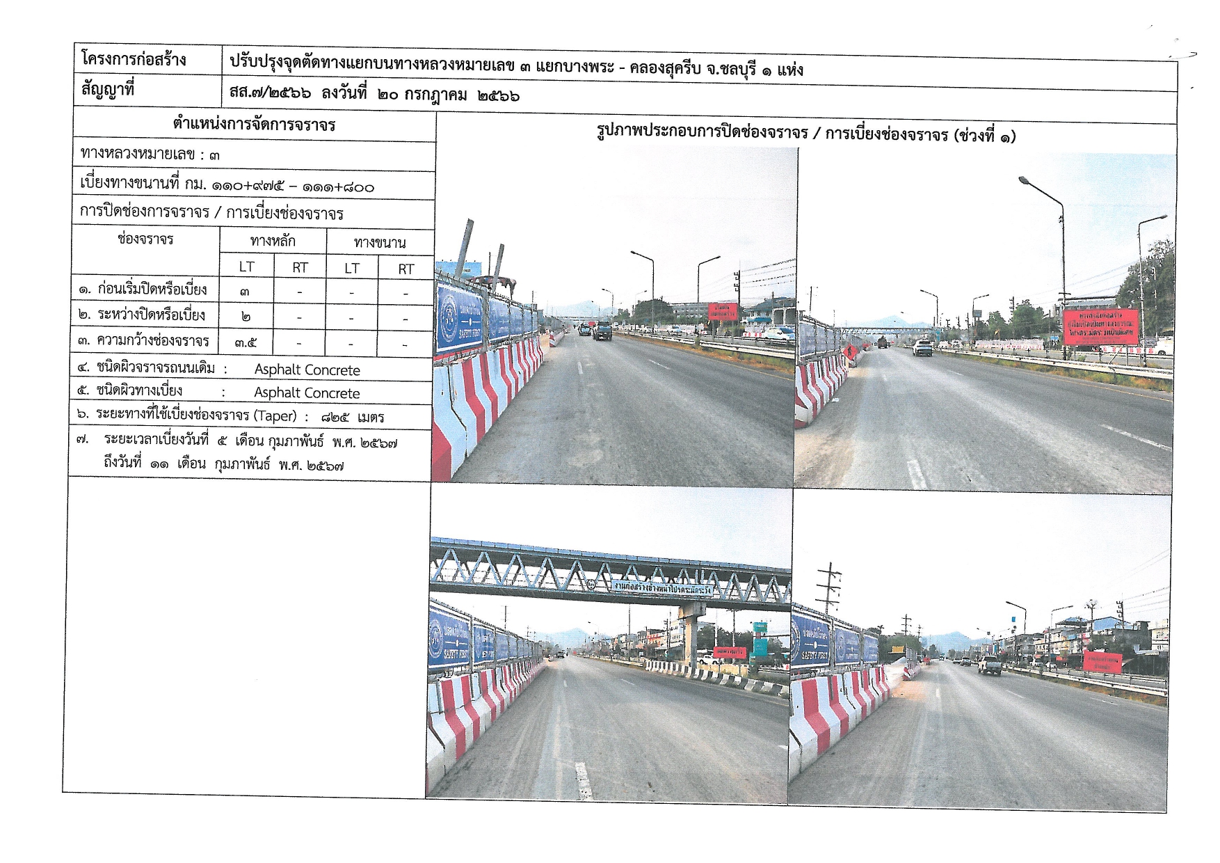 ขออนุญาตปิดการจราจรชั่วคราว งานจ้างเหมาก่อสร้างสถานีตรวจสอบน้ำหนักย่อยและจุด Check Point บนทางหลวงหมายเลข 3 ตอน ศรีราชา - พัทยา จ.ชลบุรี
