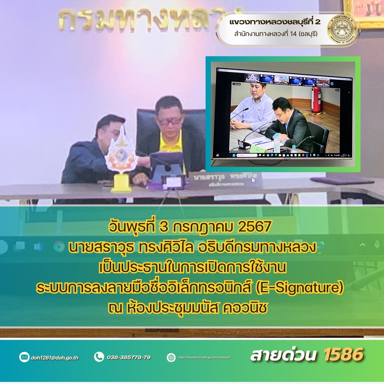 เป็นประธานในการเปิดการประชุมการลงลายมือชื่ออิเล็กทรอนิกส์ (e-Signature) ผ่านระบบสารบรรณอิเล็กทรอนิกส์สำหรับหน่วยงานภาครัฐ (e-Saraban) พร้อมคณะผู้บริหารของหน่วยงานส่วนกลาง ณ ห้องประชุมมนัส คอวนิช และเจ้าหน้าที่ในสังกัด เข้าร่วมประชุมผ่านสือออนไลน์ระบบ Zoom Meeting