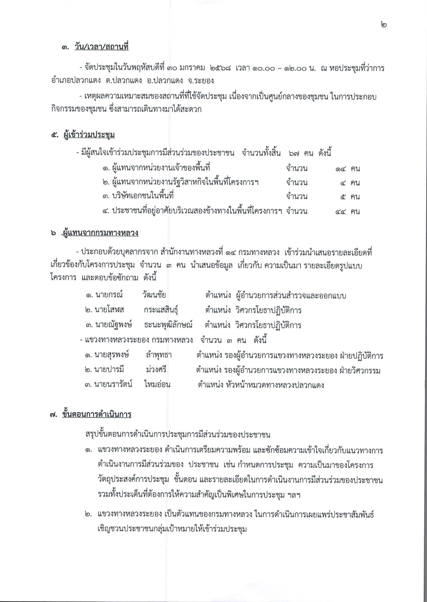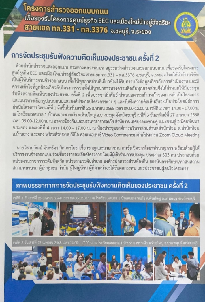 11 16/05/2568 สรุปผลการประชุมรับฟังความคิดเห็นและการมีส่วนร่วมของประชาชนครั้งที่ 2 โครงการสำรวจออกแบบถนนเพื่อการรองรับโครงการศูนย์ธุรกิจ EEC และเมืองใหม่น่าอยู่อัจฉริยะสายแยก ทล.331 - ทล.3376 จังหวัดชลบุรี,ระยอง