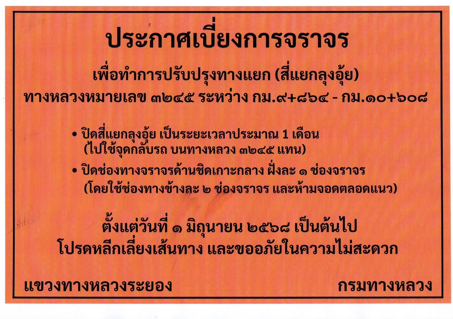 9 10/06/2568 เบื่ยงการจราจรในทางหลวงหมายเลข 3 และทางหลวงหมายเลข 3648 ทางเลี่ยงเมืองแกลง