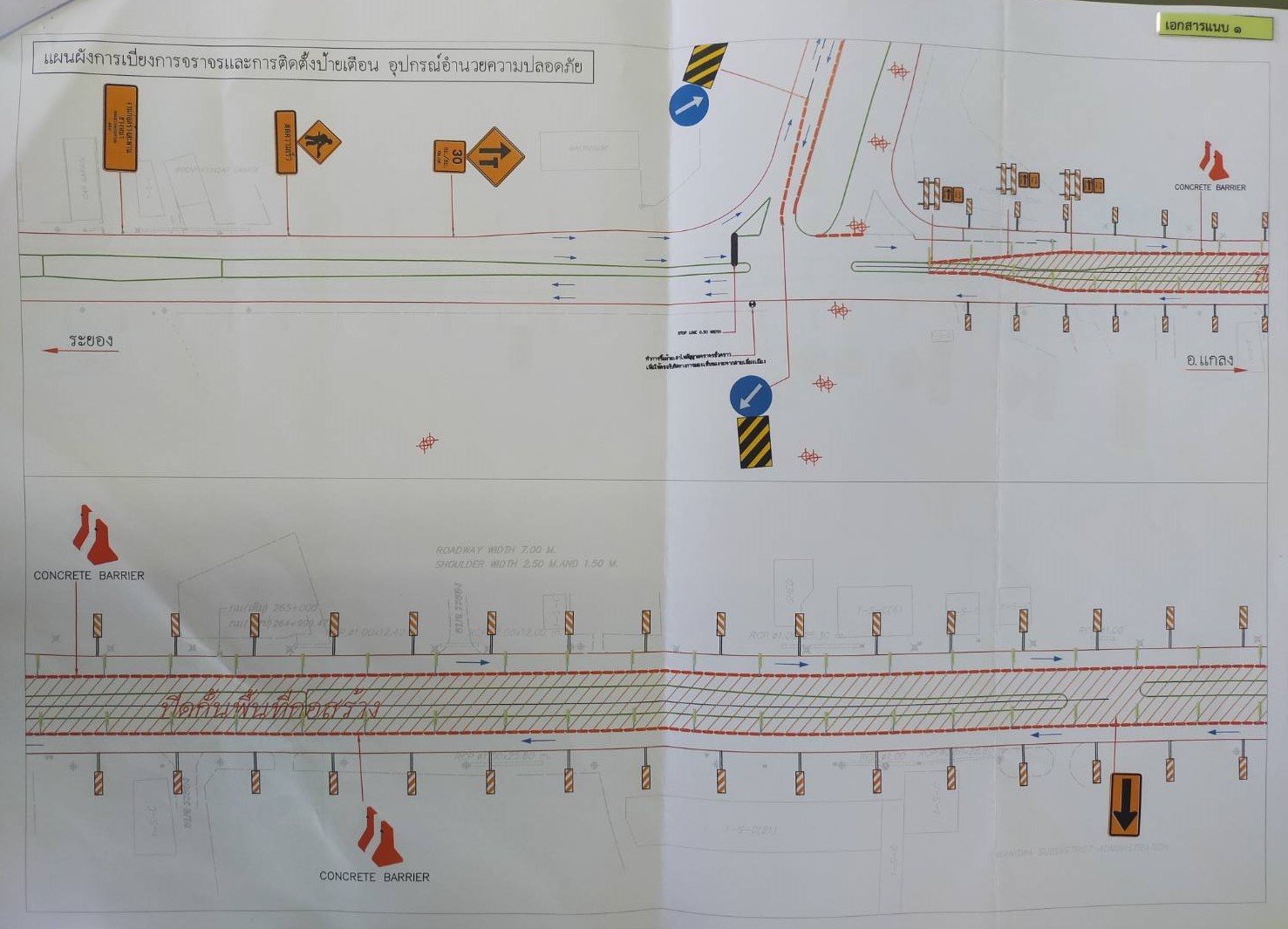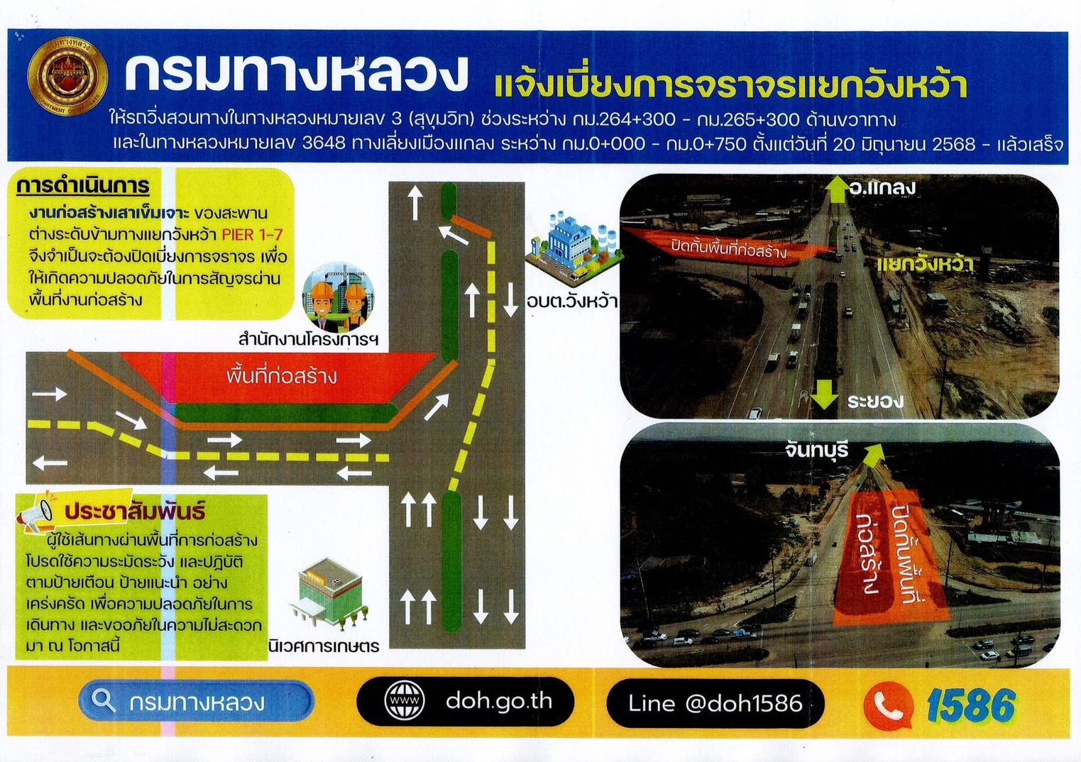 12 15/05/2568 เบี่ยงการจราจรระหว่างก่อสร้างของโครงการก่อสร้างทางหลวงหมายเลข 3648 สายเลี่ยงเมืองแกลง ตอน 1