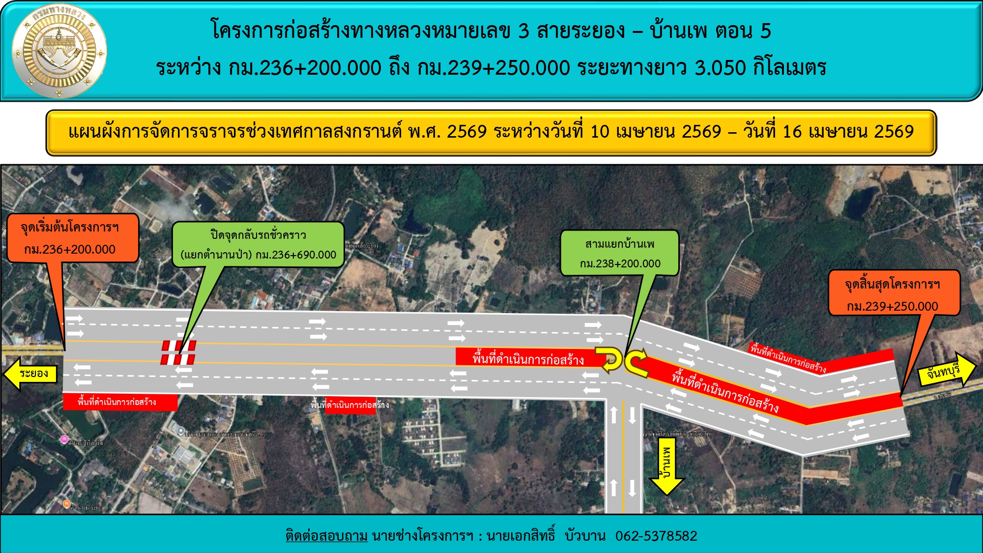 4 03/04/2569 ประชาสัมพันธ์การจัดการจราจรช่วงเทศกาลสงกรานต์ ประจำปี 2569 (แขวงทางหลวงระยอง)