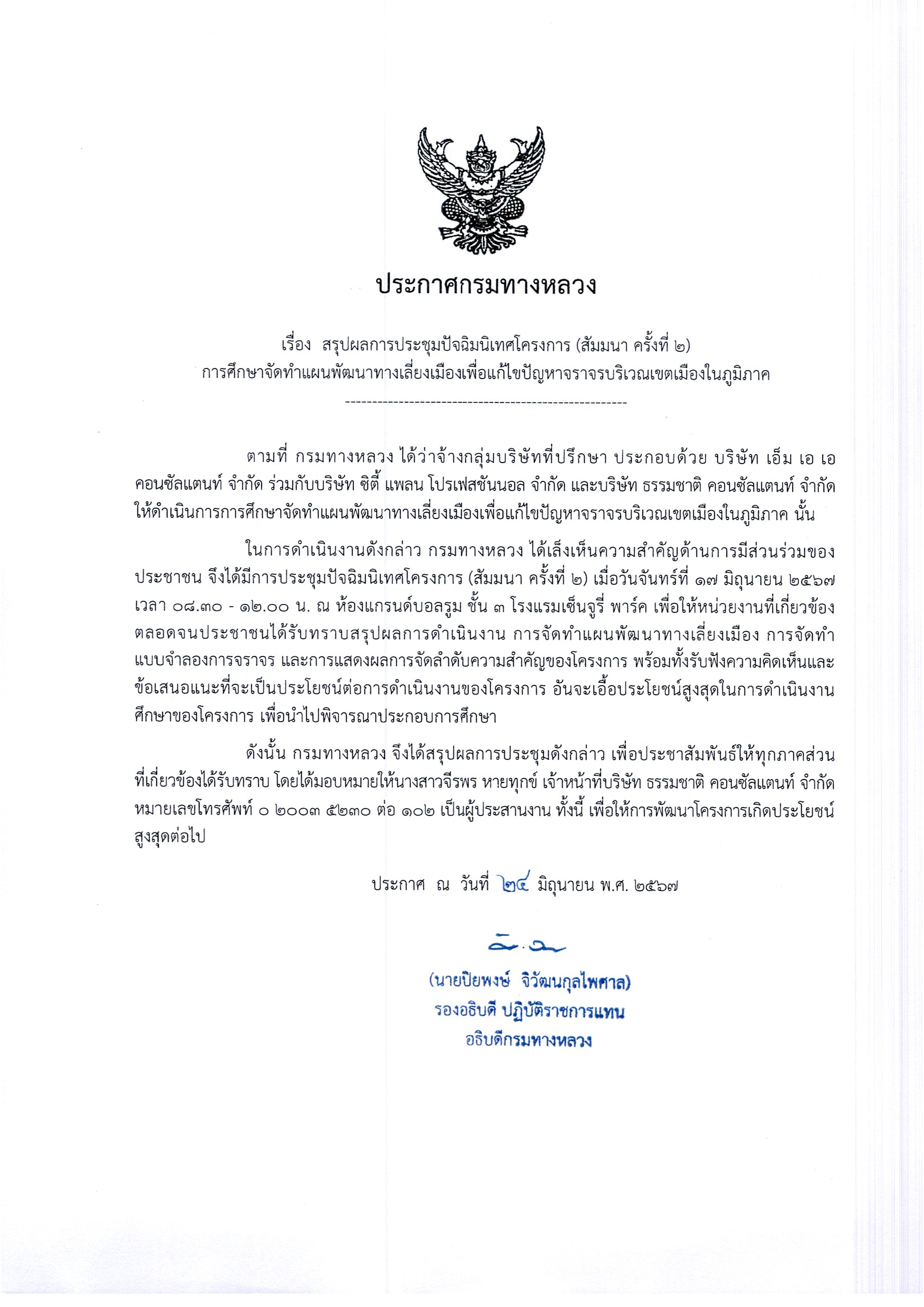 สรุปผลการประชุมปัจฉิมนิเทศโครงการ (สัมมนา ครั้งที่ 2) การศึกษาจัดทำแผนพัฒนาทางเลี่ยงเมืองเพื่อแก้ไขปัญหาจราจรบริเวณเขตเมืองในภูมิภาค