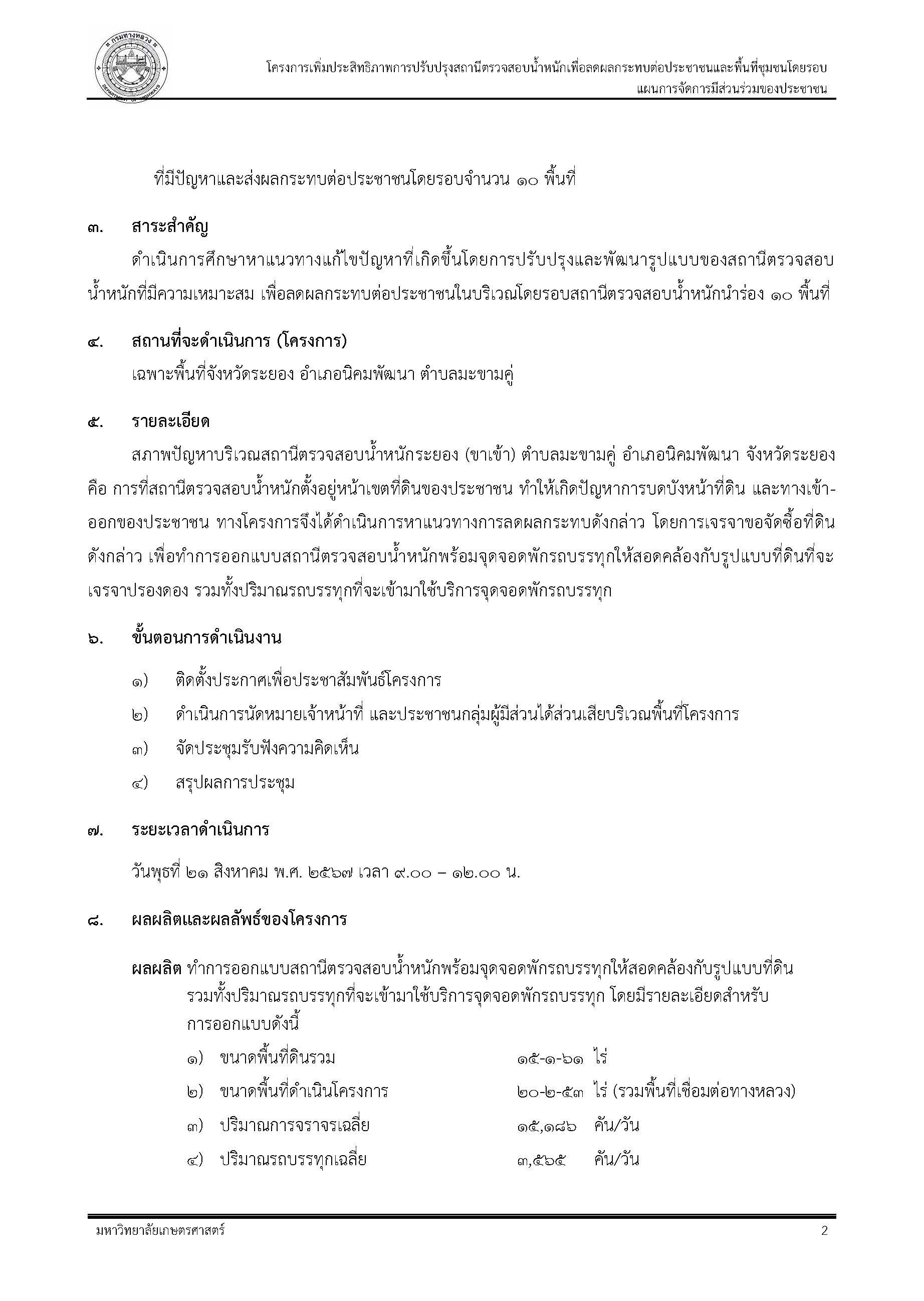 โครงการเพิ่มประสิทธิภาพการปรับปรุงสถานีตรวจสอบน้ำหนัก เพื่อลดผลกระทบต่อประชาชนและพื้นที่ชุมชนโดยรอบ สถานีตรวจสอบน้ำหนักระยอง(ขาเข้า)จ.ระยอง