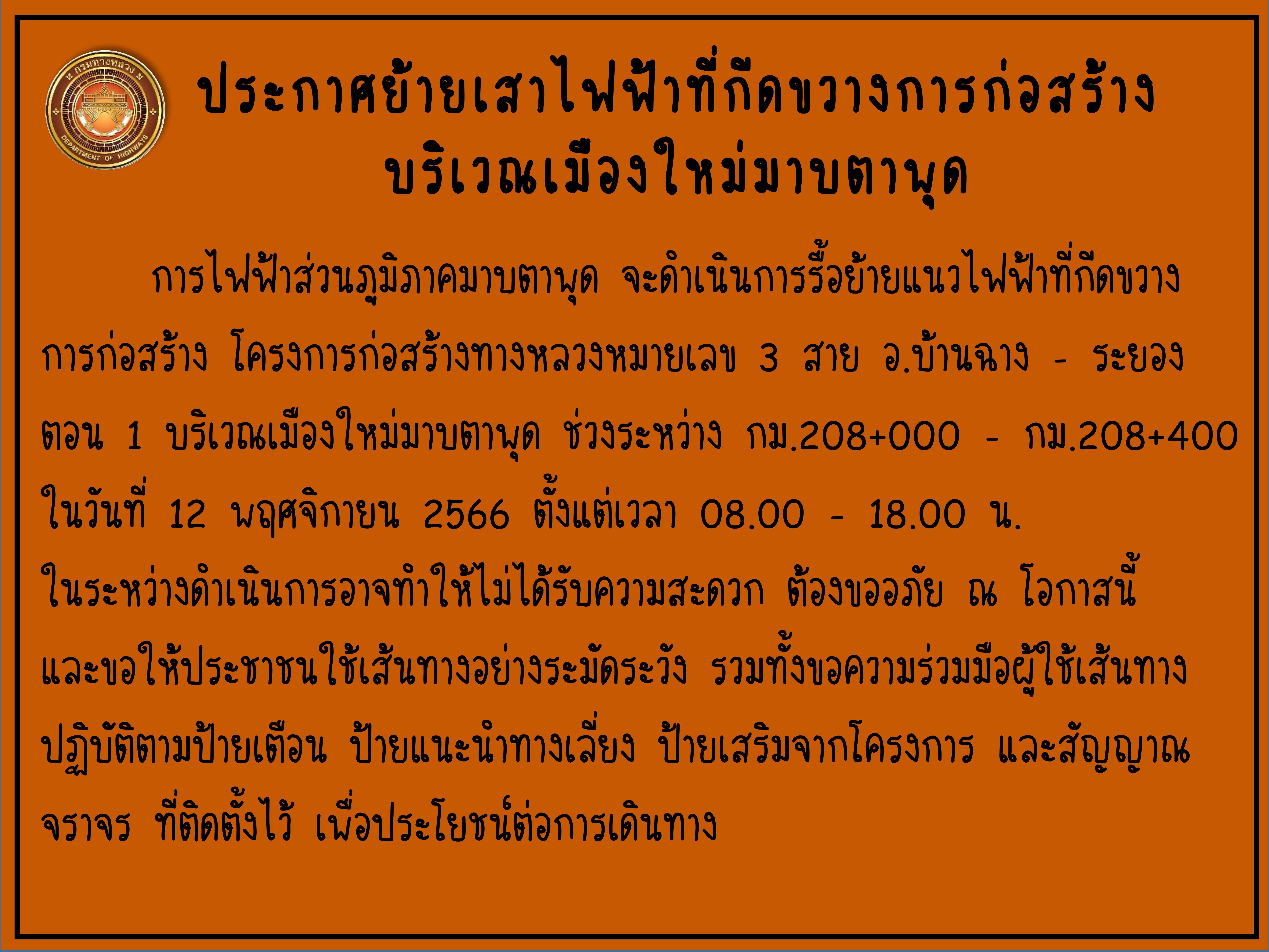 44 08/11/2566 #ประกาศย้ายเสาไฟฟ้าที่กีดขวางการก่อสร้างบริเวณเมืองใหม่มาบตาพุด