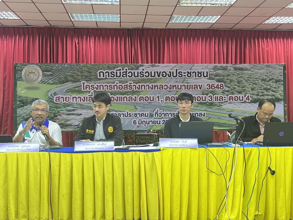 32 06/06/2567 จัดประชุมการมีส่วนร่วมของประชาชน โครงการก่อสร้างทางหลวงหมายเลข 3648 สายเลี่ยงเมืองแกลง ตอน 1 - 4 ระหว่าง กม.0+000 - กม.11+553