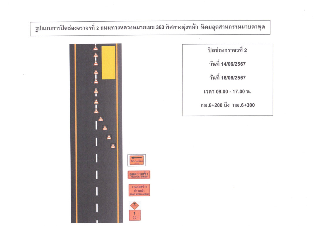 31 06/06/2567 แจ้งปิดการจราจรเป็นบางช่วงระหว่างการก่อสร้าง ทางหลวงหมายเลข 363 ตอน ศูนย์ราชการระยอง - นิคมอุตสาหกรรมมาบตาพุด จ.ระยอง