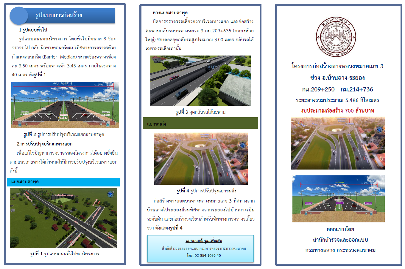 ข้อมูลข่าว : แผ่นพับโครงการก่อสร้างทางหลวงหมายเลข 3 ช่วง อ.บ้านฉาง-ระยอง ตอน 2 ระหว่างกม.209+250 - กม.214+736