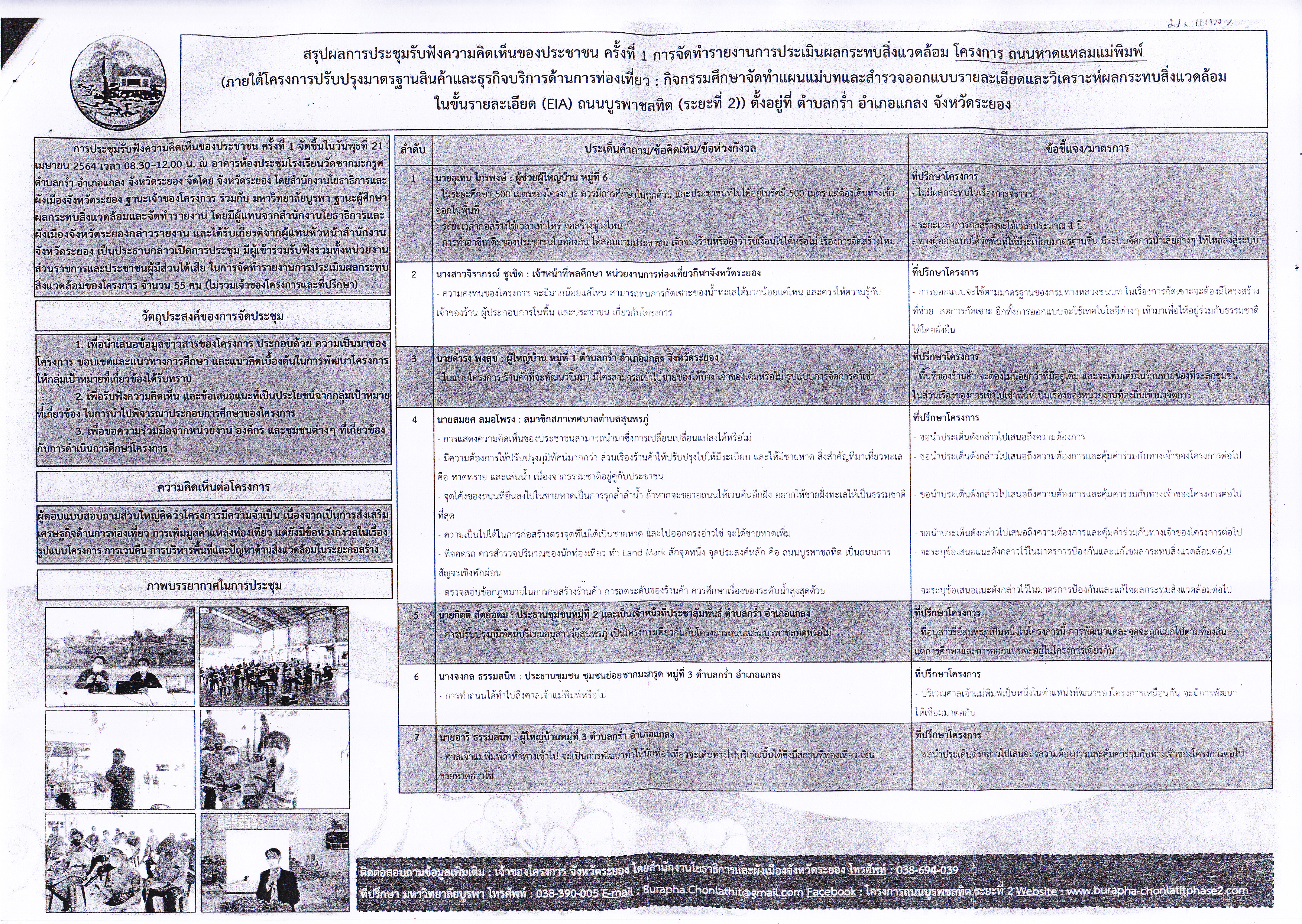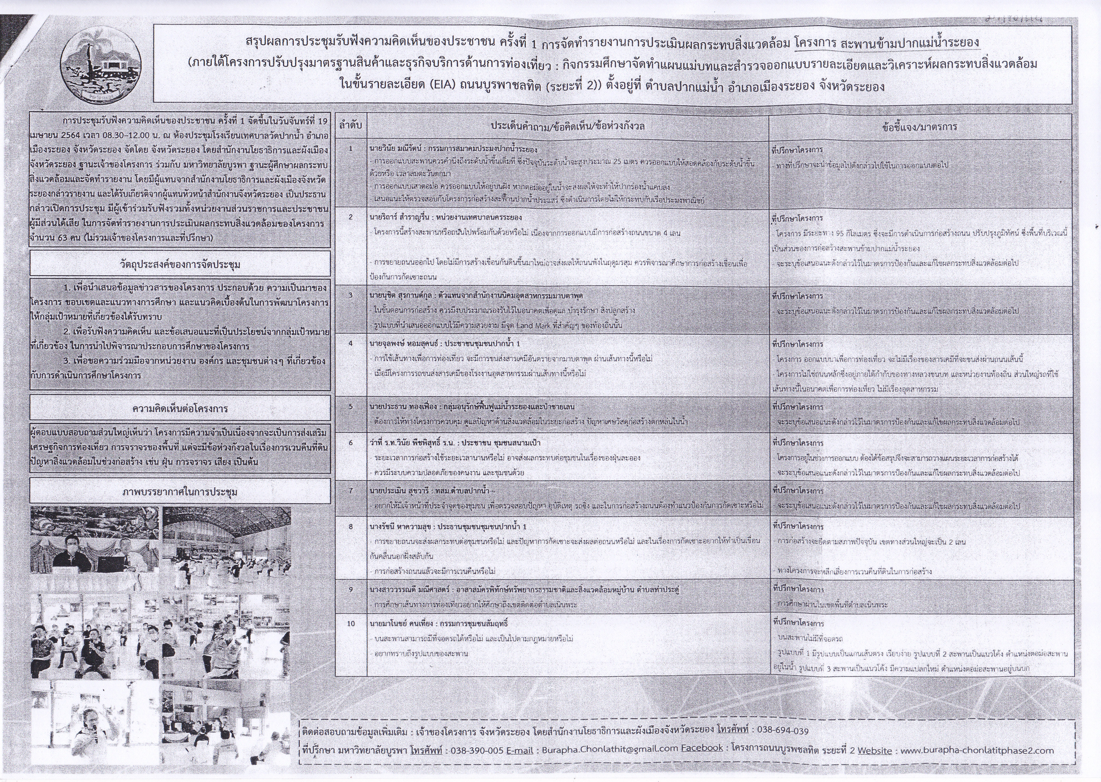 สรุปผลการประชุมรับฟังความคิดเห็นของประชาชน โครงการ สะพานข้ามปากแม่น้ำระยอง , โครงการ ถนนหาดแหลมแม่พิมพ์ , โครงการ สะพานข้ามปากคลองตากวน