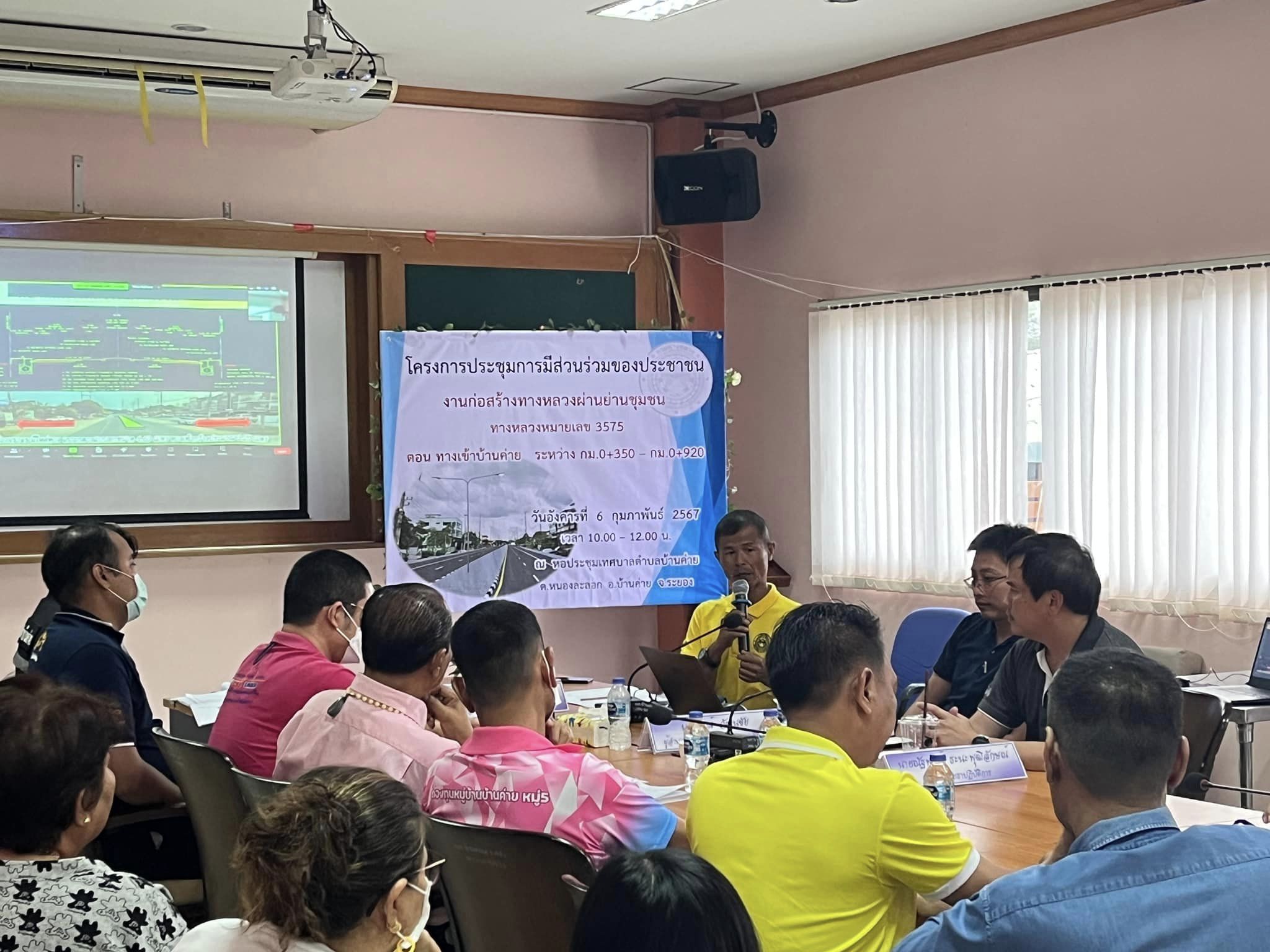 วันอังคารที่ 6 กุมภาพันธ์ 2567 เวลา 10.00 น. นายสุชาติ เชาวน์เสฏฐกุล ผู้อำนวยการแขวงทางหลวงระยอง? พร้อมเจ้าหน้าที่ จัดประชุมการมีส่วนร่วมของประชาชนเพื่อรับฟังความคิดเห็นฯ โครงการก่อสร้างทางหลวงผ่านย่านชุมชน ทางหลวงหมายเลข 3575 ตอน ทางเข้าบ้านค่าย ระหว่าง กม.0+350 - กม.0+920 โดยมี นายสุทธิพงศ์ ทองส่องแสง นายกเทศมนตรีตำบลบ้านค่าย เป็นประธานในพิธีเปิดการประชุมฯ ณ ห้องประชุมเทศบาลตำบลบ้านค่าย