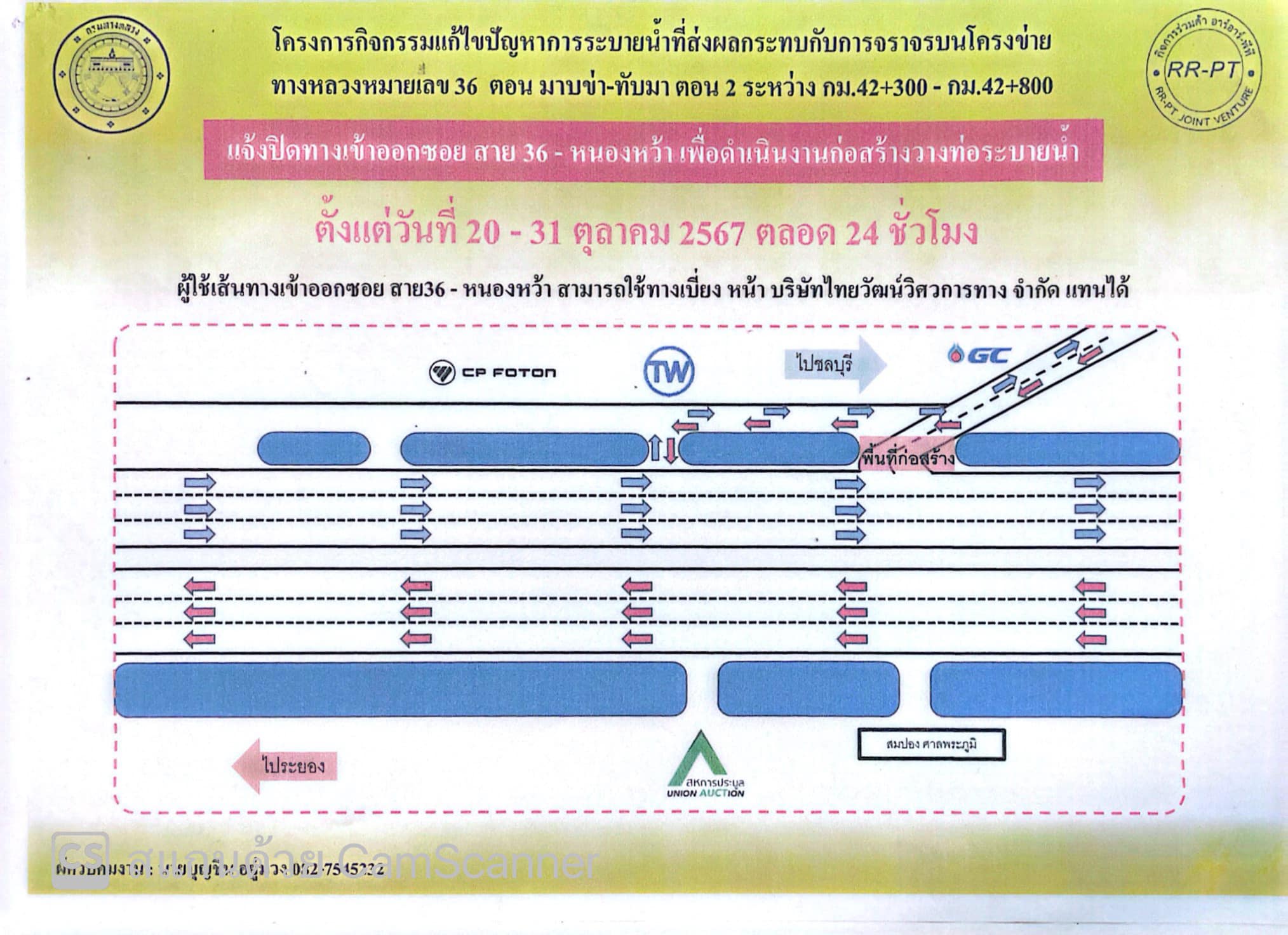 แจ้งปิดทางเข้าออกซอย สาย36 -หนองหว้า เพื่อดำเนินงานก่อสร้างวางท่อระบายน้ำ ตั้งแต่วันที่ 20-31 ตุลาคม 2567 ตลอด 24 ชม.