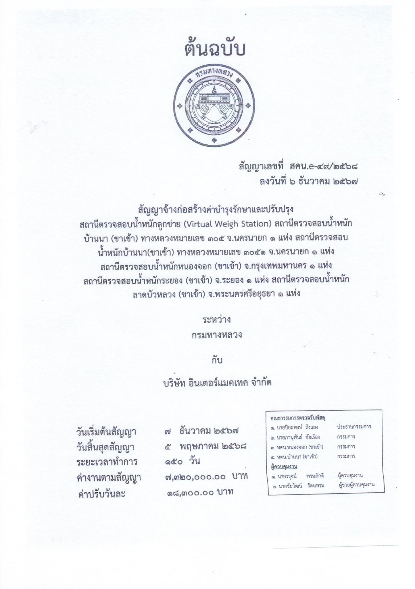 (Vitual Weigh Station) สถานีตรวจสอบน้ำหนักระยอง (ขาเข้า) จ.ระยอง 1 แห่ง ช่วง กม.26+100 - กม.26+000 ทางหลวงหมายเลข 36 (เลน 2 )