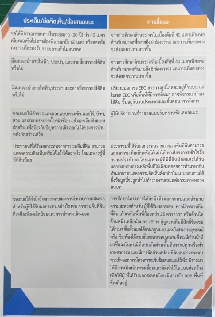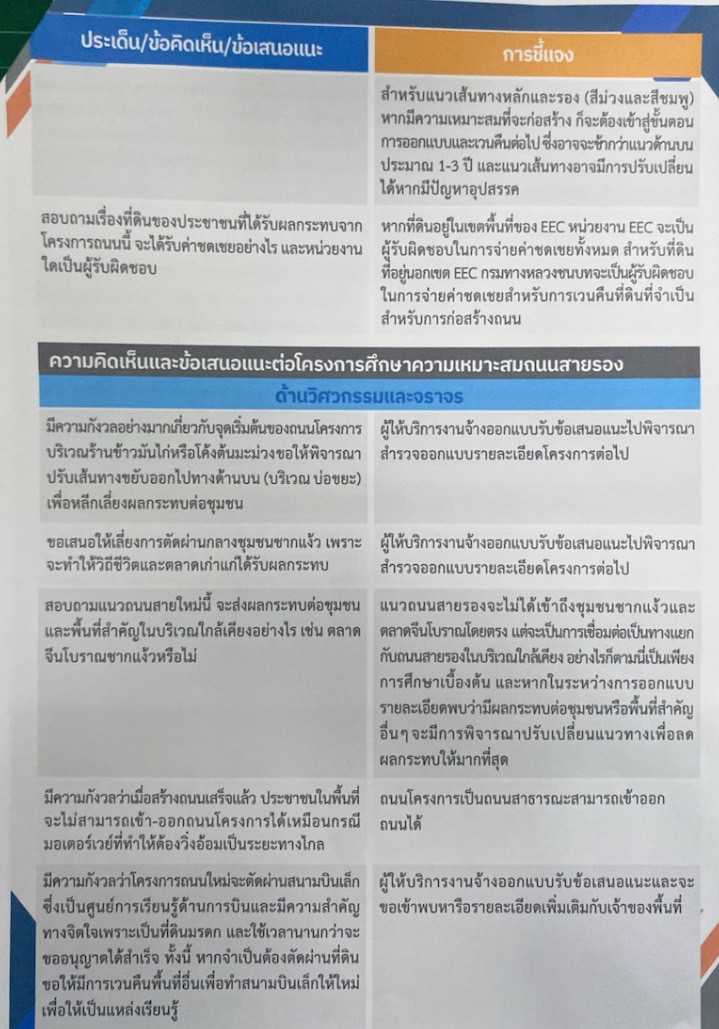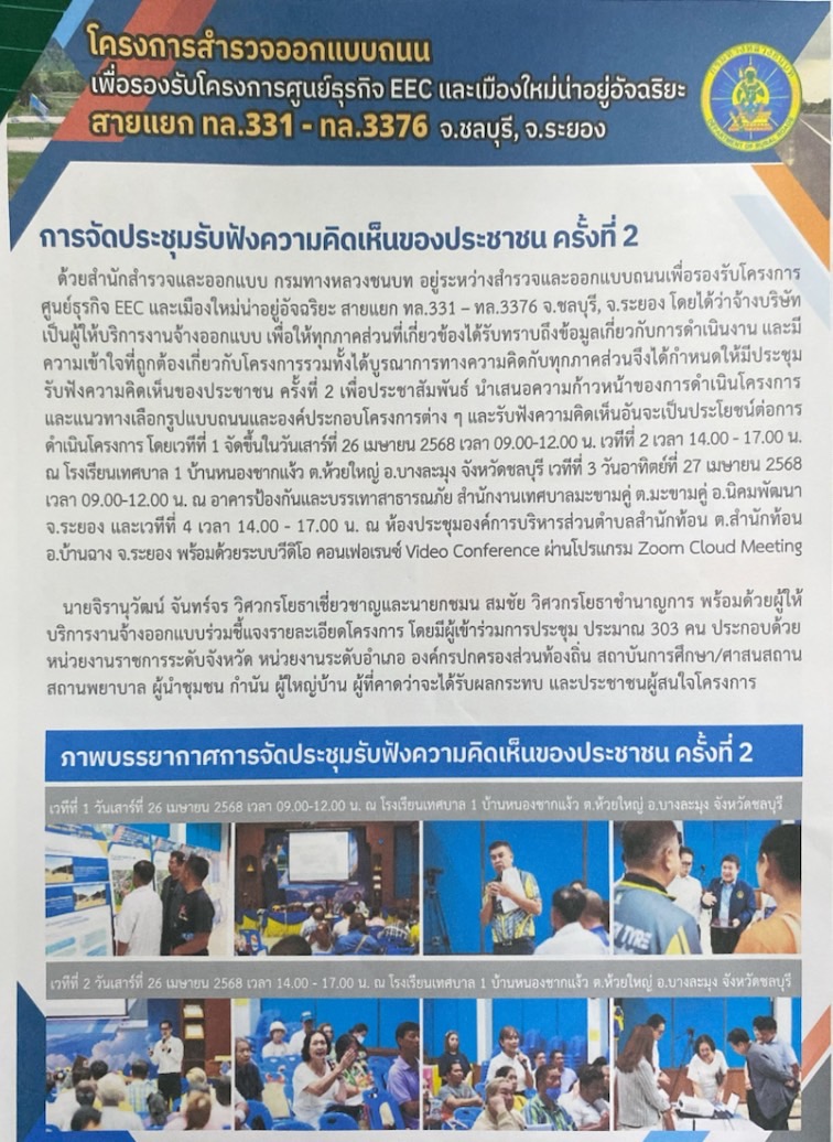 สรุปผลการประชุมรับฟังความคิดเห็นและการมีส่วนร่วมของประชาชนครั้งที่ 2 โครงการสำรวจออกแบบถนนเพื่อการรองรับโครงการศูนย์ธุรกิจ EEC และเมืองใหม่น่าอยู่อัจฉริยะ