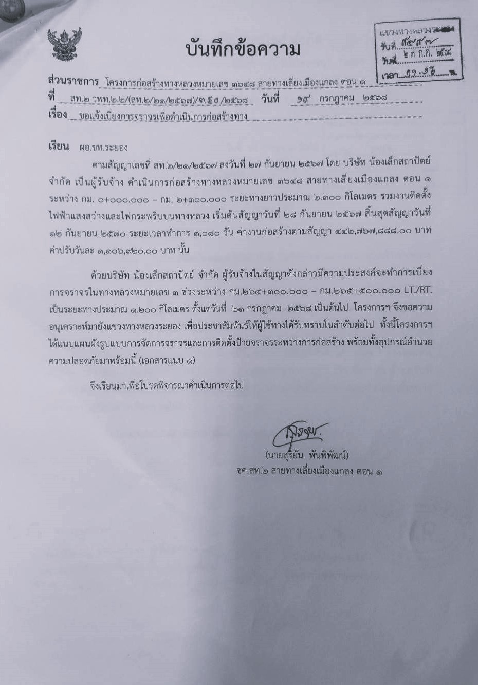 แจ้งการเบื่ยงการจราจรในทางหลวงหมายเลข 3 กม.264+300 - กม.265+500 ฝั้งซ้ายทางและขวาทาง เป็นระยะทางประมาณ 2.3 กิโลเมตร ตั้งแต่วันที่ 21 กรกฎาคม 2568 เป็นต้นไป