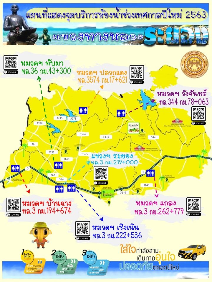 ข้อมูลข่าว : แผนที่แสดงจุดบริการห้องน้ำช่วงเทศกาลปีใหม่ 2563 ของแขวงฯ ระยอง